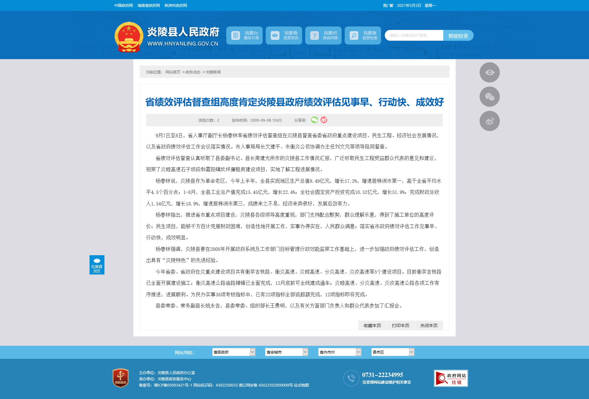 杨春林强调,炎陵县要在2008年开展政府系统及工作部门目标管理行政效能监察工作基础上,进一步加强政府绩效评估工作,创造出具有“炎陵特色”的先进经验。
