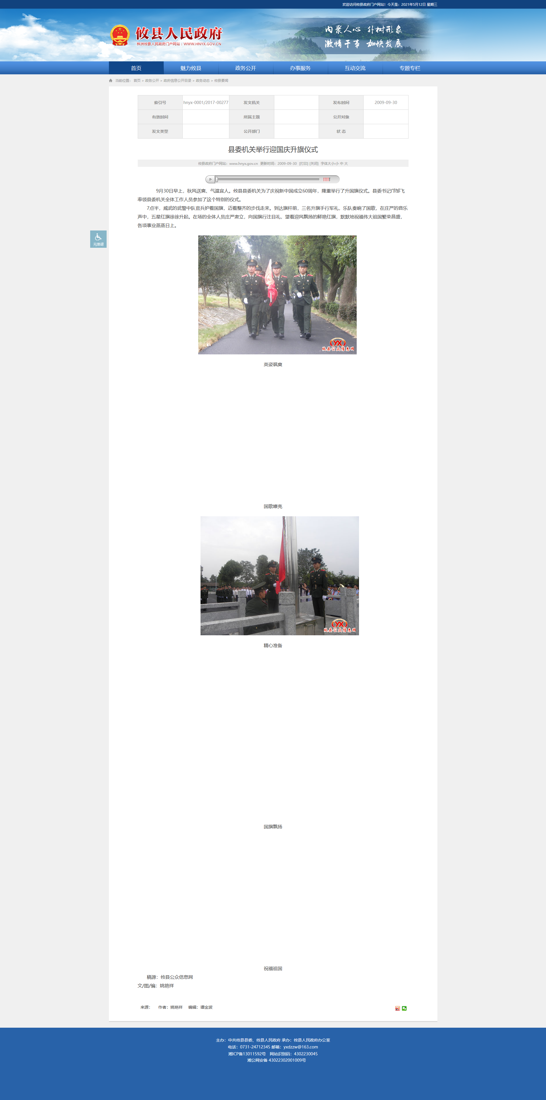9月30日早上,秋风送爽、气温宜人。攸县县委机关为了庆祝新中国成立60周年,隆重举行了升国旗仪式。县委书记邝邹飞率领县委机关全体工作人员参加了这个特别的仪式。