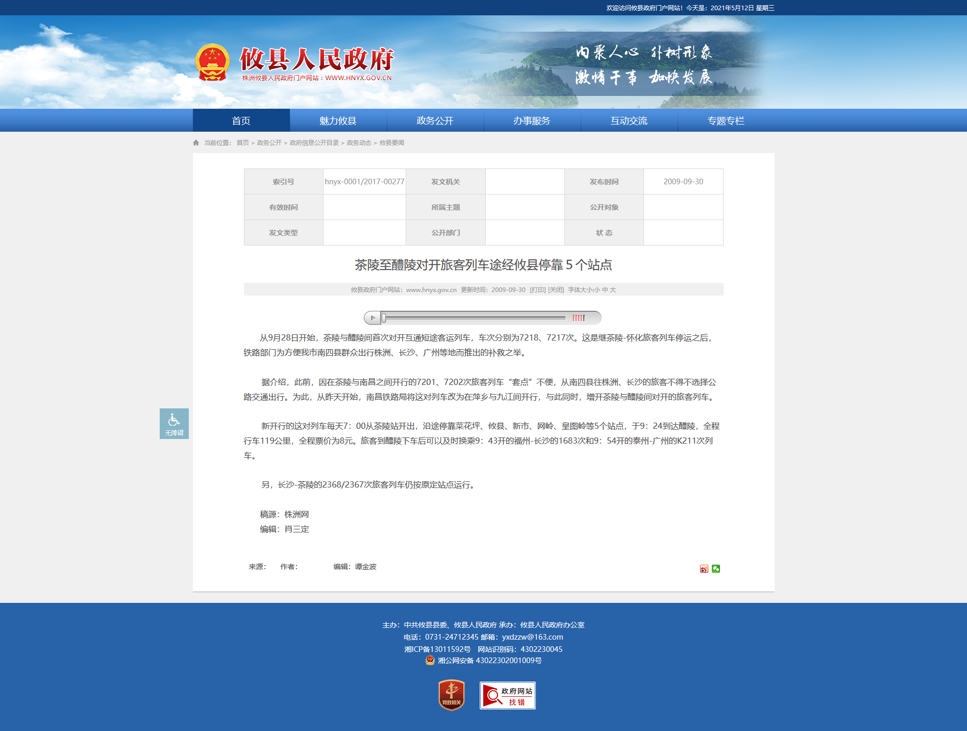 茶陵至醴陵对开旅客列车途经攸县停靠5个站点