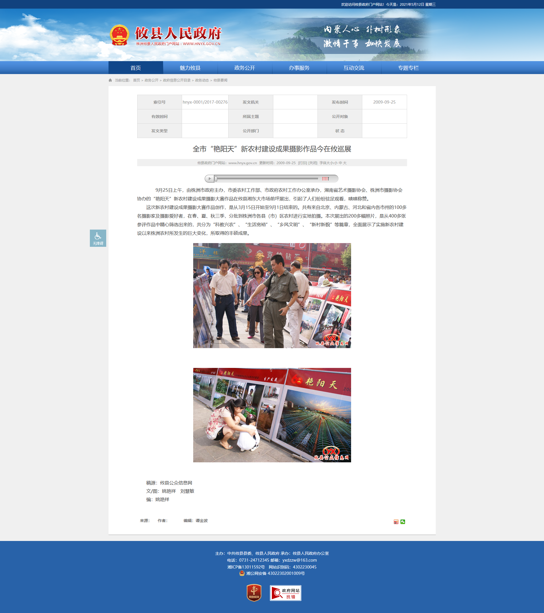 9月25日上午,由株洲市政府主办,市委农村工作部、市政府农村工作办公室承办,湖南省艺术摄影协会、株洲市摄影协会协办的“艳阳天”新农村建设成果摄影大赛作品在攸县湘东大市场前坪展出,引起了人们纷纷驻足观看,啧啧称赞。
