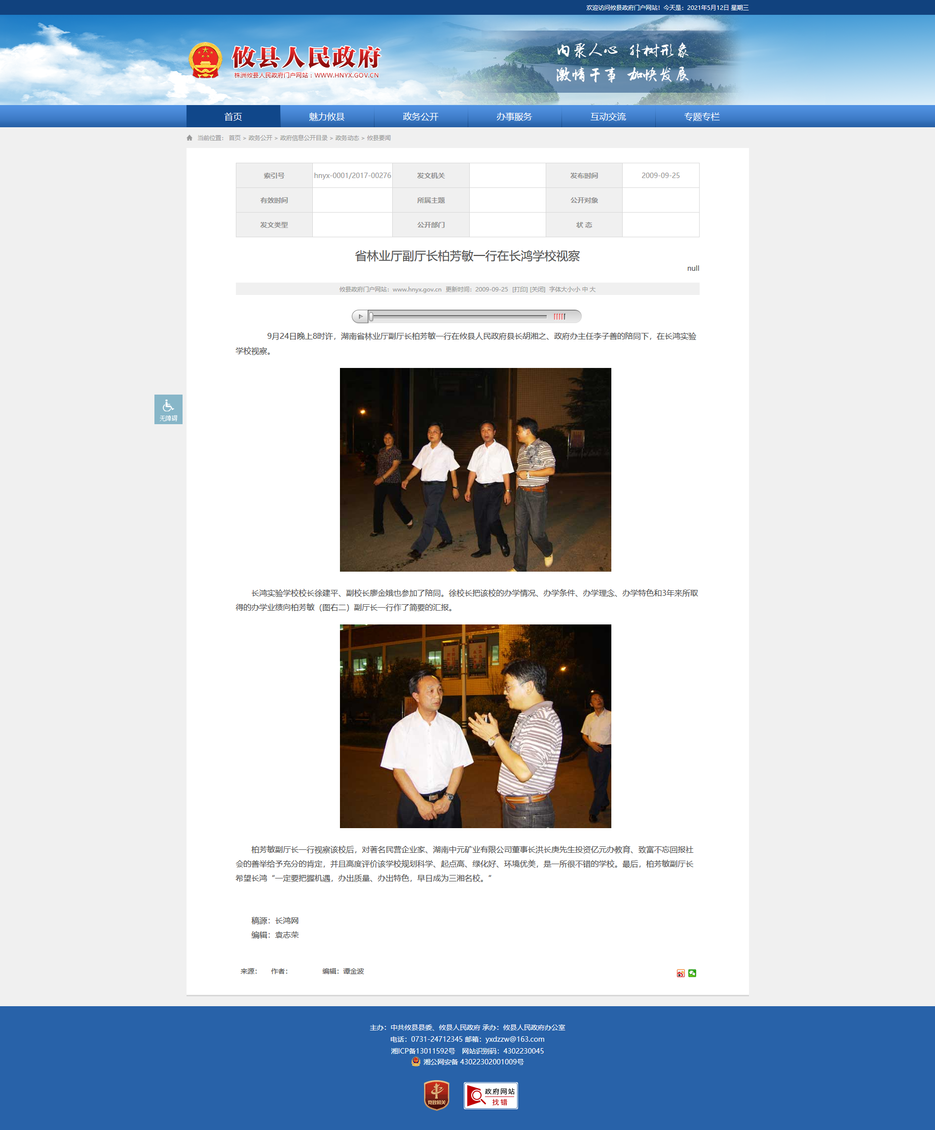 9月24日晚上8时许,湖南省林业厅副厅长柏芳敏一行在攸县人民政府县长胡湘之、政府办主任李子善的陪同下,在长鸿实验学校视察。