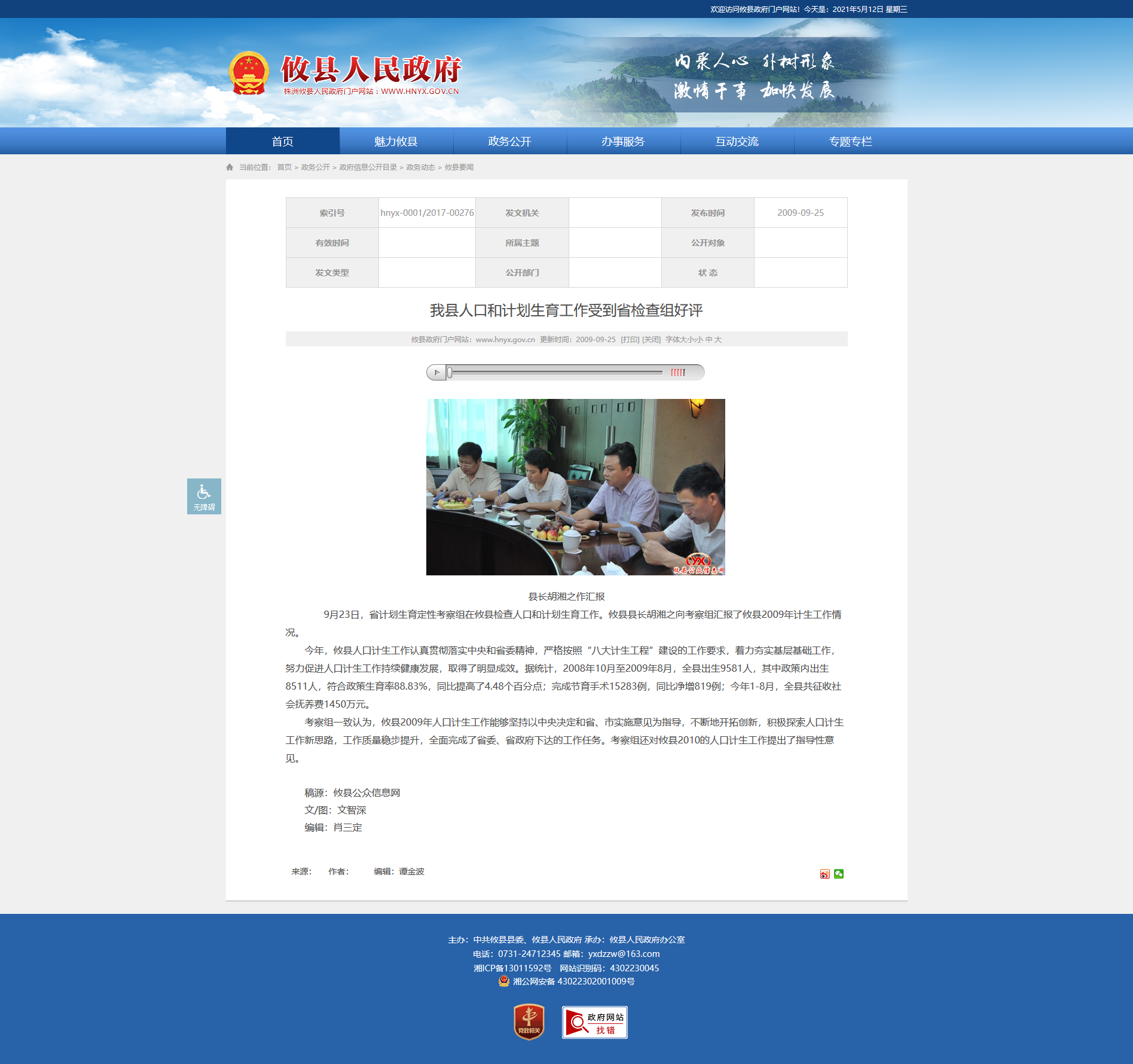 9月23日,省计划生育定性考察组在攸县检查人口和计划生育工作。攸县县长胡湘之向考察组汇报了攸县2009年计生工作情况。