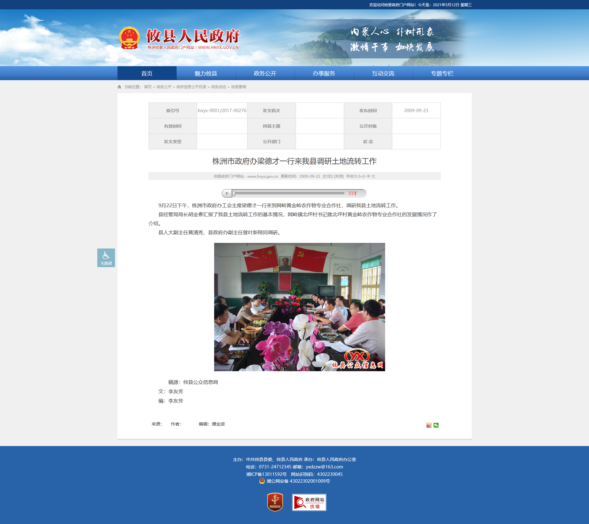 株洲市政府办梁德才一行来我县调研土地流转工作