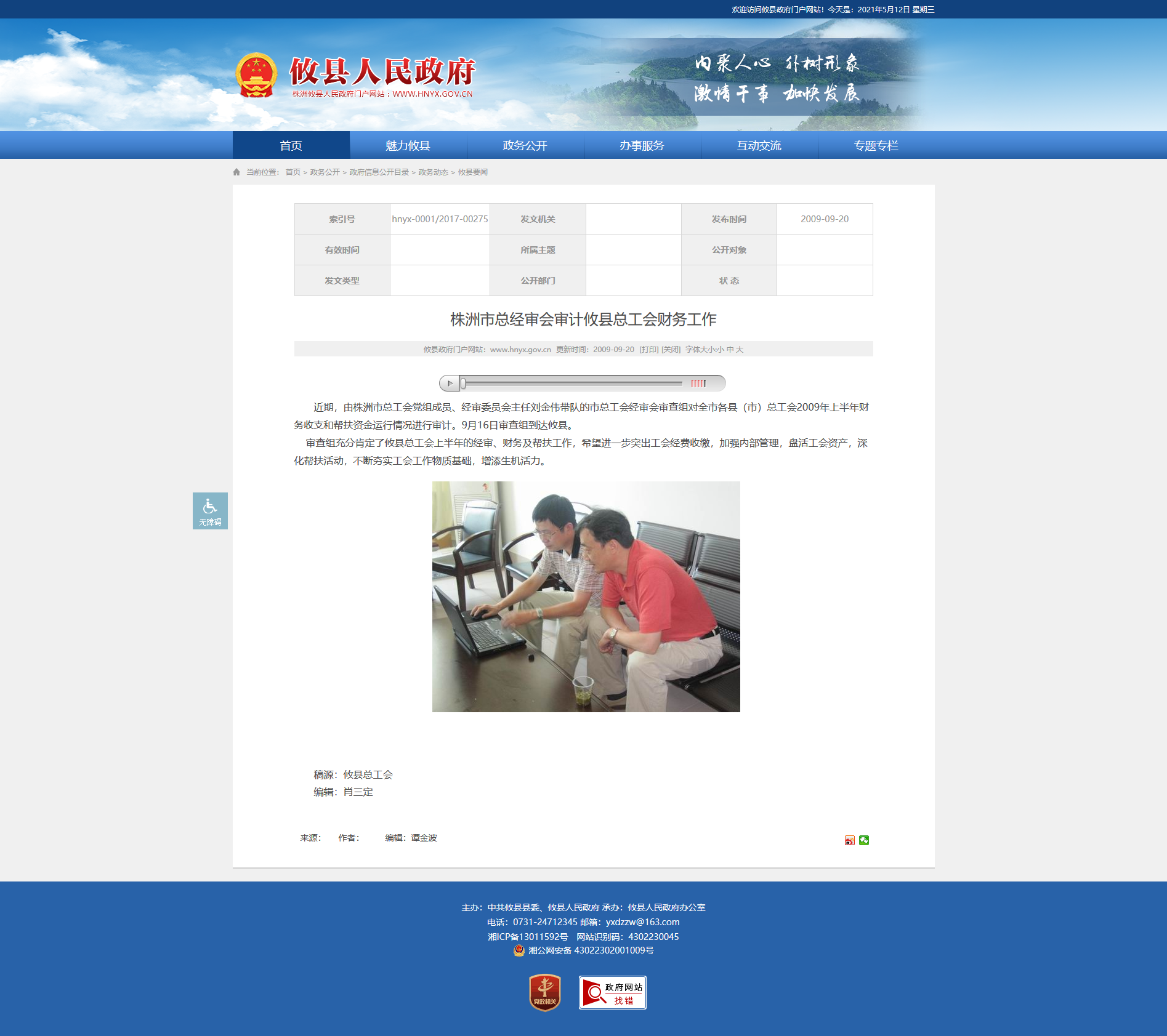 近期,由株洲市总工会党组成员、经审委员会主任刘金伟带队的市总工会经审会审查组对全市各县(市)总工会2009年上半年财务收支和帮扶资金运行情况进行审计。9月16日审查组到达攸县。 审查组充分肯定了攸县总工会上半年的经审、财务及帮扶工作,希望进一步突出工会经费收缴,加强内部管理,盘活工会资产,深化帮扶活动,不断夯实工会工作物质基础,增添生机活力。
