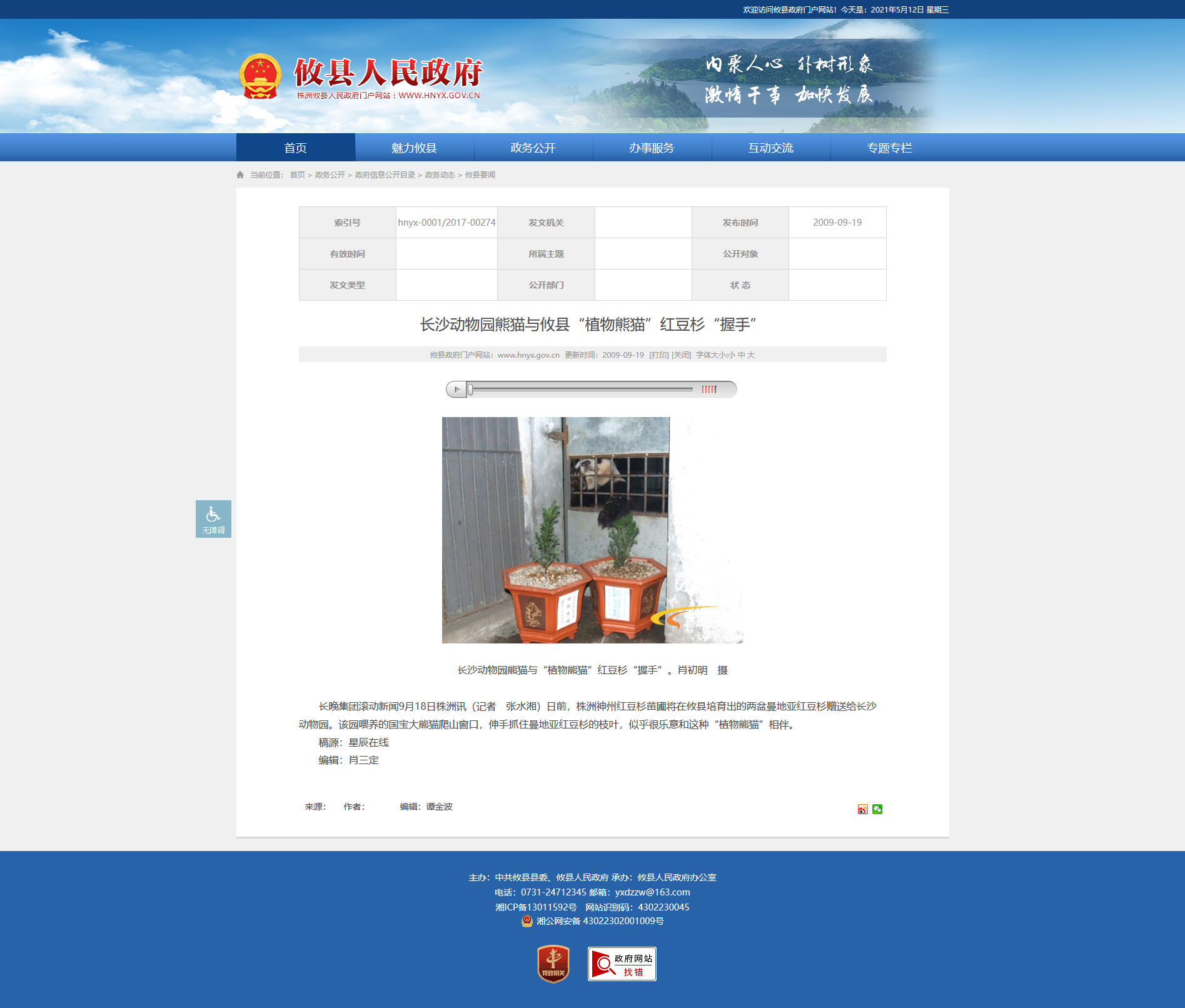 长沙动物园熊猫与攸县“植物熊猫”红豆杉“握手”