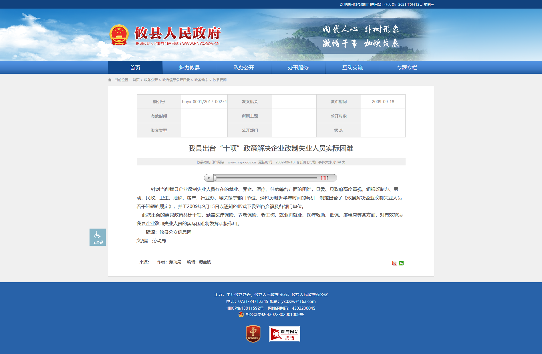 此次出台的惠民政策共计十项,涵盖医疗保险、养老保险、老工伤、就业再就业、医疗救助、低保、廉租房等各方面,对有效解决我县企业改制失业人员的实际困难将发挥积极作用。