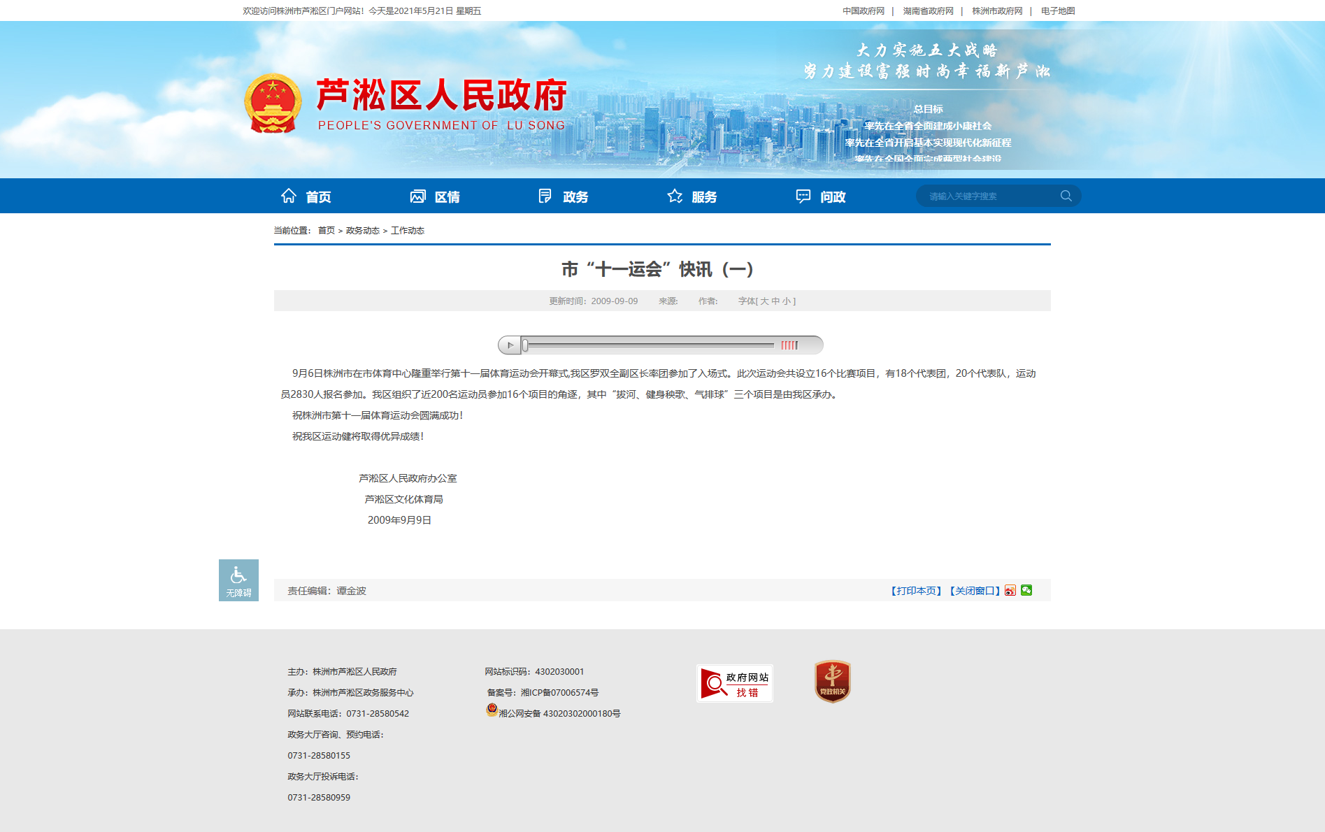 9月6日株洲市在市体育中心隆重举行第十一届体育运动会开幕式,我区罗双全副区长率团参加了入场式。此次运动会共设立16个比赛项目,有18个代表团,20个代表队,运动员2830人报名参加。我区组织了近200名运动员参加16个项目的角逐,其中“拔河、健身秧歌、气排球”三个项目是由我区承办。