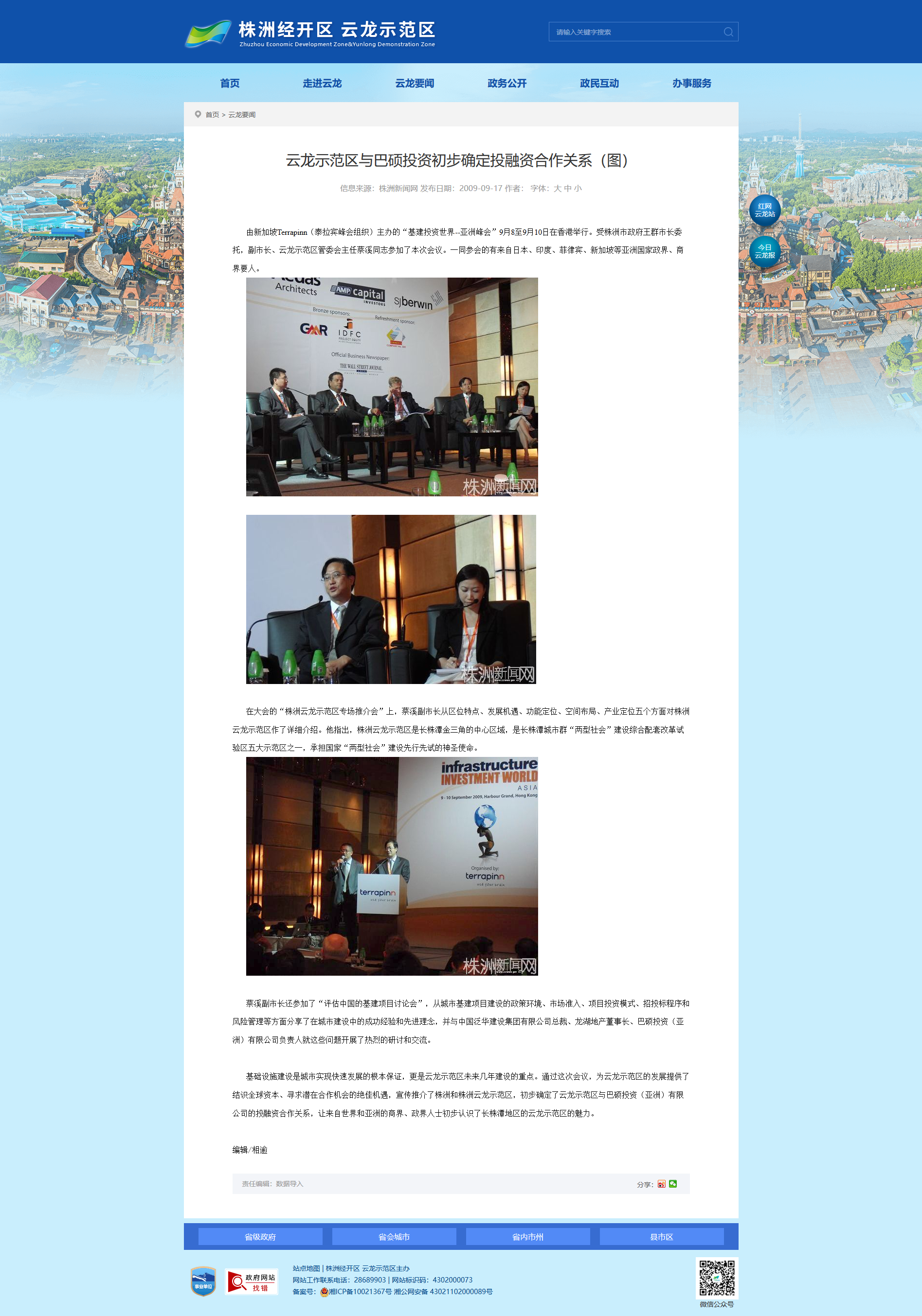 基础设施建设是城市实现快速发展的根本保证,更是云龙示范区未来几年建设的重点。通过这次会议,为云龙示范区的发展提供了结识全球资本、寻求潜在合作机会的绝佳机遇,宣传推介了株洲和株洲云龙示范区,初步确定了云龙示范区与巴硕投资(亚洲)有限公司的投融资合作关系,让来自世界和亚洲的商界、政界人士初步认识了长株潭地区的云龙示范区的魅力。