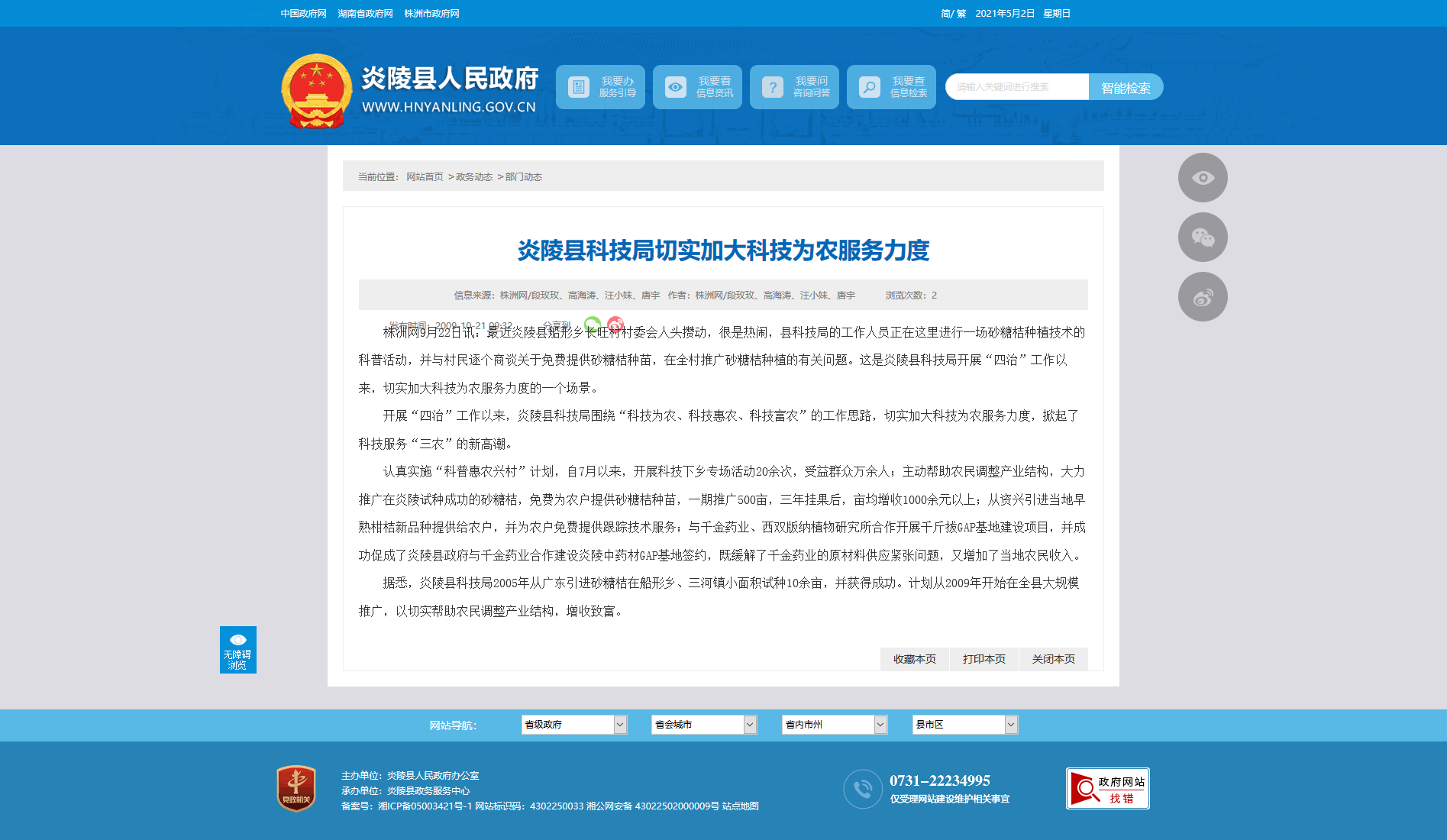 开展“四治”工作以来,炎陵县科技局围绕“科技为农、科技惠农、科技富农”的工作思路,切实加大科技为农服务力度,掀起了科技服务“三农”的新高潮。