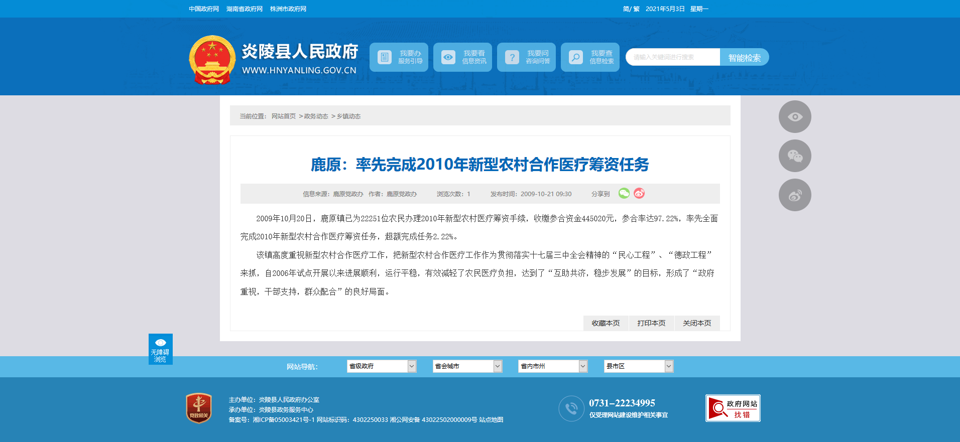 时间:2009-10-21 09:30:00 来源: 炎陵县人民政府 来源截图