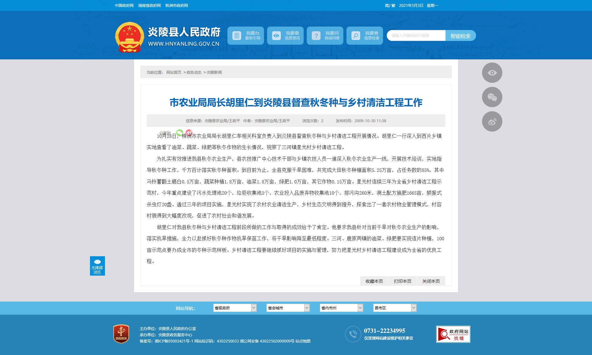胡里仁对我县秋冬种与乡村清洁工程前段所做的工作与取得的成效给予了肯定。他要求我县针对当前干旱对秋冬农业生产的影响,落实抗旱措施,全力以赴抓好秋冬种作物抗旱保苗工作,将干旱影响降至最低程度。三河、鹿原两镇的油菜、绿肥要实现连片种植,100亩示范点要办成全市的冬种示范样板。乡村清洁工程要继续抓好项目的实施与管理,努力把星光村乡村清洁工程建设成为全省的优良工程。