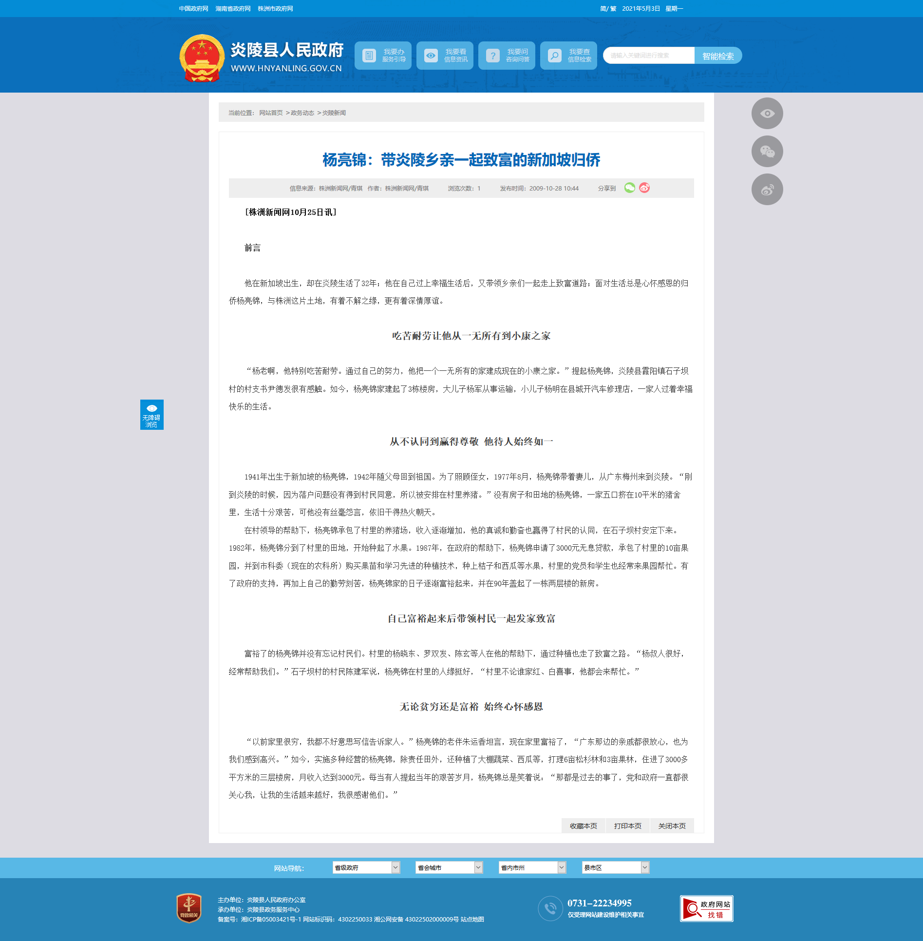 他在新加坡出生,却在炎陵生活了32年;他在自己过上幸福生活后,又带领乡亲们一起走上致富道路;面对生活总是心怀感恩的归侨杨亮锦,与株洲这片土地,有着不解之缘,更有着深情厚谊。