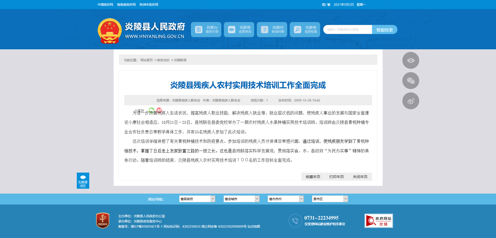 这次培训详细讲授了有关黄桃种植技术和防疫要点。参加培训的残疾人员对讲课非常感兴趣,通过培训,使残疾朋友学到了黄桃种植技术,掌握了日后走上发家致富之路的一技之长。这也是县残联落实科学发展观,贯彻落实省、市、县政府“为民办实事”精神的具体行动。随着培训班的结束,炎陵县残疾人农村实用技术培训100名的工作目标全面完成。