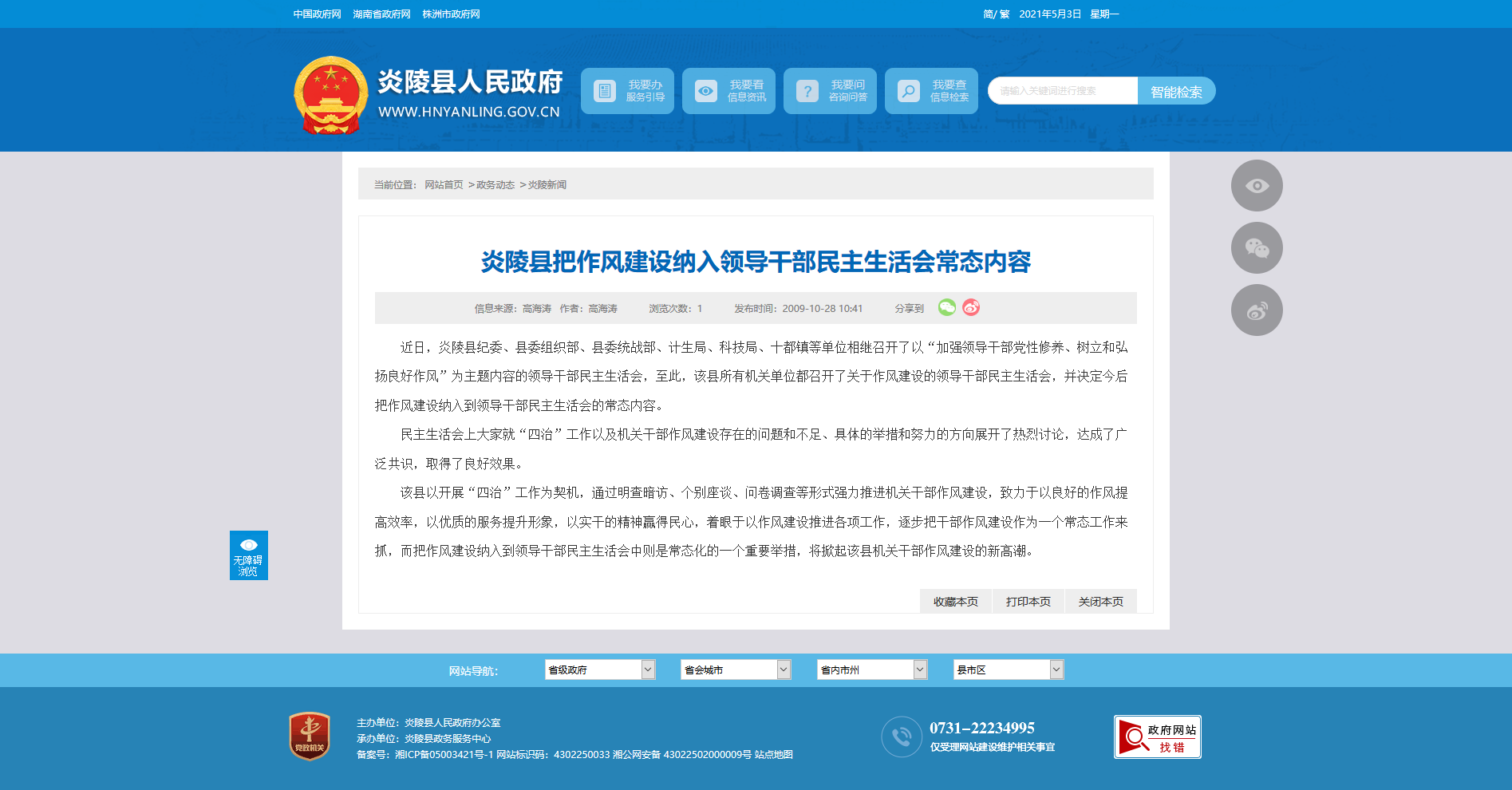 近日,炎陵县纪委、县委组织部、县委统战部、计生局、科技局、十都镇等单位相继召开了以“加强领导干部党性修养、树立和弘扬良好作风”为主题内容的领导干部民主生活会,至此,该县所有机关单位都召开了关于作风建设的领导干部民主生活会,并决定今后把作风建设纳入到领导干部民主生活会的常态内容。