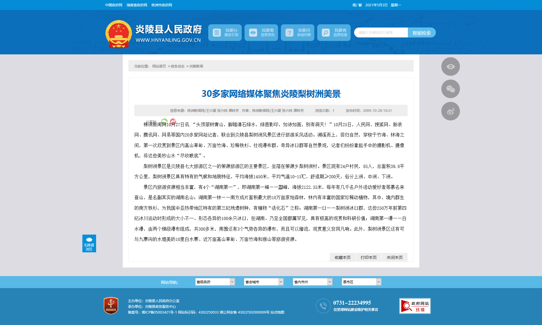 株洲新闻网10月27日讯 “头顶翠树青山,脚踏清石绿水,绿茵影印,如诗如画,别有洞天!”10月25日,人民网、搜狐网、新浪网、腾讯网、网易等国内20多家网站记者,联合到炎陵县梨树洲风景区进行旅游采风活动。溯溪而上,回归自然,穿梭于竹海、林海之间,第一次欣赏到景区内高山草甸、万亩竹海、珍稀铁杉、壮观瀑布群、奇异冰臼群等自然景观,记者们纷纷拿起手中的摄影机、摄像机,将这些美妙山水“尽收眼底”。