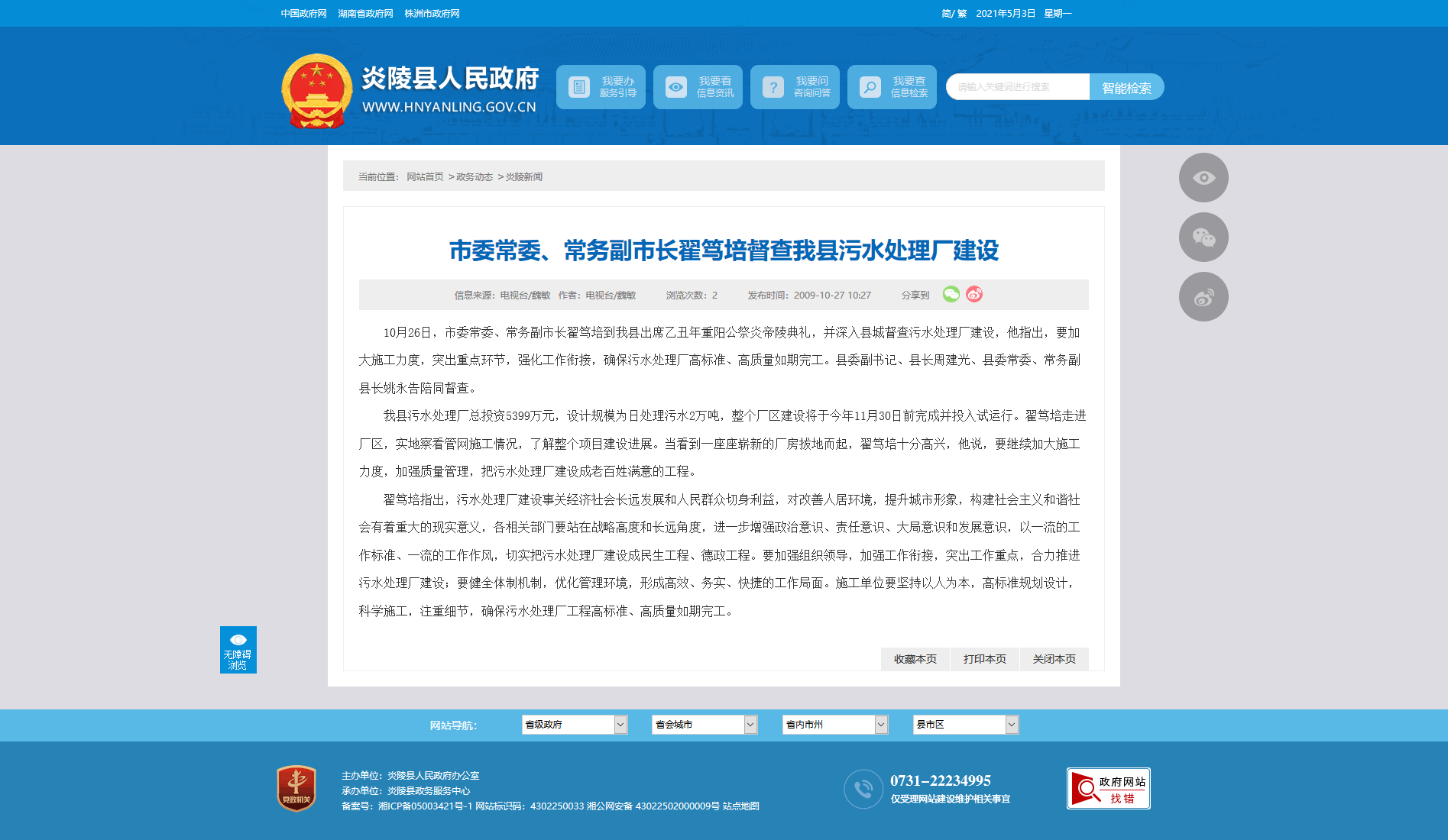 翟笃培指出,污水处理厂建设事关经济社会长远发展和人民群众切身利益,对改善人居环境,提升城市形象,构建社会主义和谐社会有着重大的现实意义,各相关部门要站在战略高度和长远角度,进一步增强政治意识、责任意识、大局意识和发展意识,以一流的工作标准、一流的工作作风,切实把污水处理厂建设成民生工程、德政工程。要加强组织领导,加强工作衔接,突出工作重点,合力推进污水处理厂建设;要健全体制机制,优化管理环境,形成高效、务实、快捷的工作局面。施工单位要坚持以人为本,高标准规划设计,科学施工,注重细节,确保污水处理厂工程高标准、高质量如期完工。