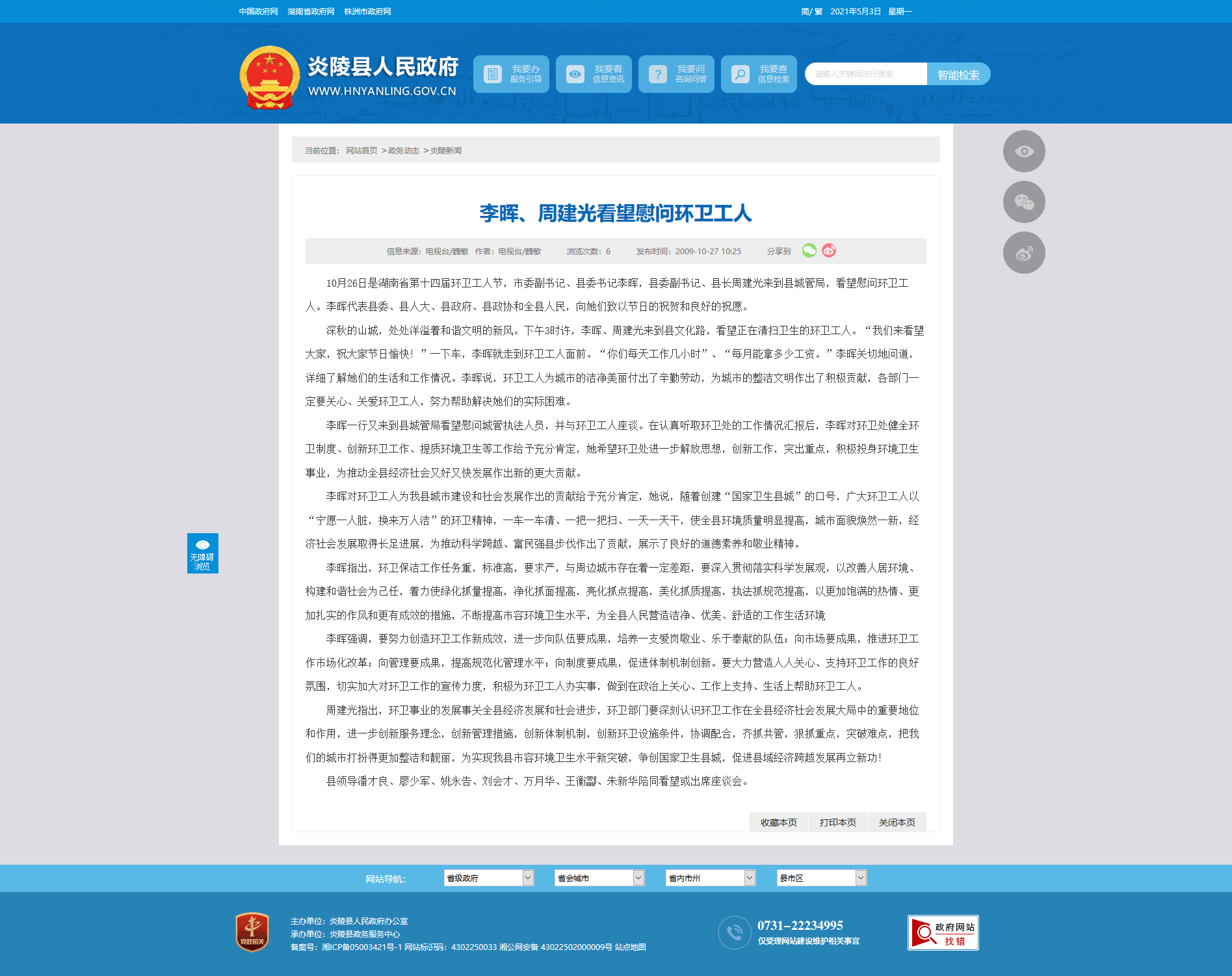 李晖对环卫工人为我县城市建设和社会发展作出的贡献给予充分肯定,她说,随着创建“国家卫生县城”的口号,广大环卫工人以“宁愿一人脏,换来万人洁”的环卫精神,一车一车清、一把一把扫、一天一天干,使全县环境质量明显提高,城市面貌焕然一新,经济社会发展取得长足进展,为推动科学跨越、富民强县步伐作出了贡献,展示了良好的道德素养和敬业精神。