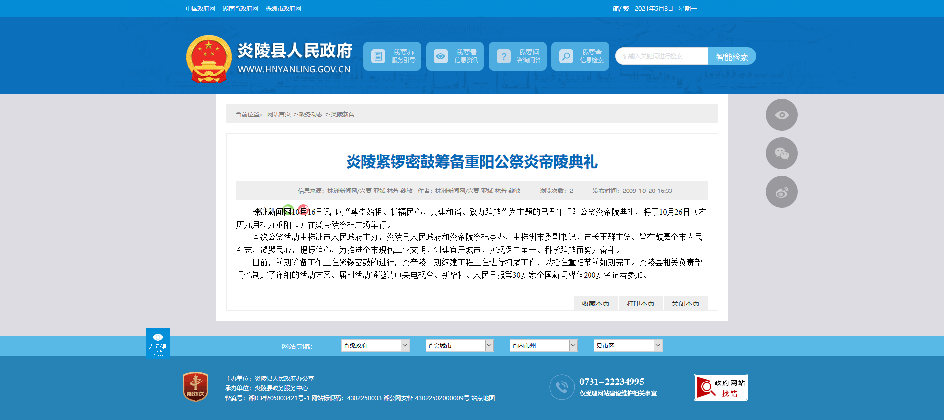 时间:2009-10-20 16:33:00 来源: 炎陵县人民政府 来源截图