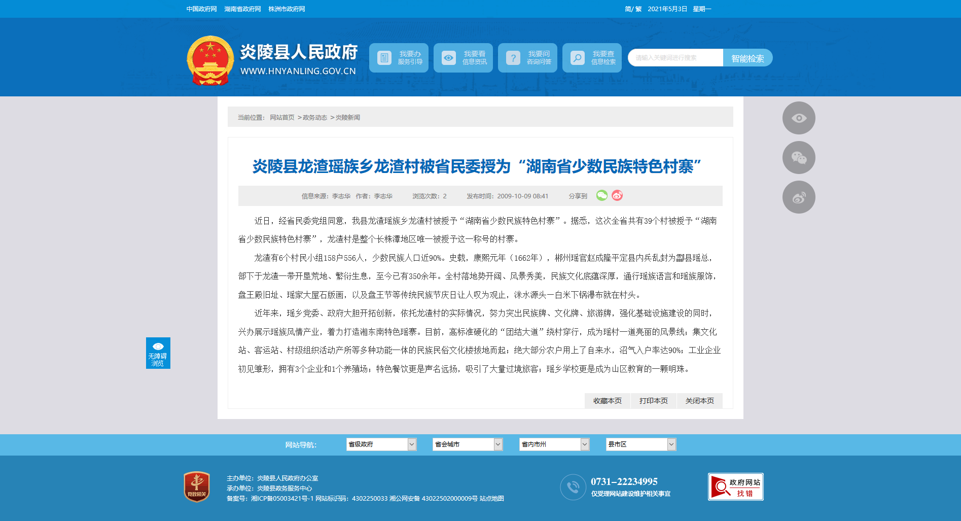 近日,经省民委党组同意,我县龙渣瑶族乡龙渣村被授予“湖南省少数民族特色村寨”。据悉,这次全省共有39个村被授予“湖南省少数民族特色村寨”,龙渣村是整个长株潭地区唯一被授予这一称号的村寨。