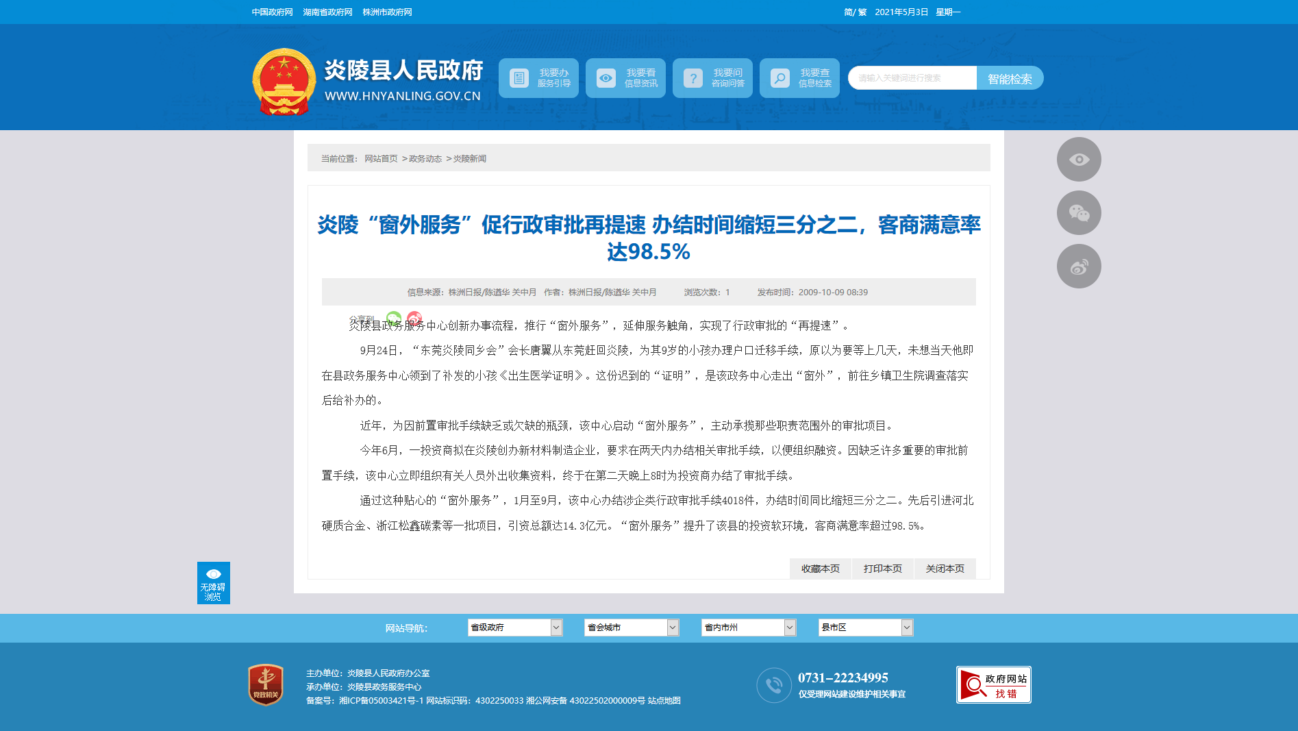 炎陵县政务服务中心创新办事流程,推行“窗外服务”,延伸服务触角,实现了行政审批的“再提速”。