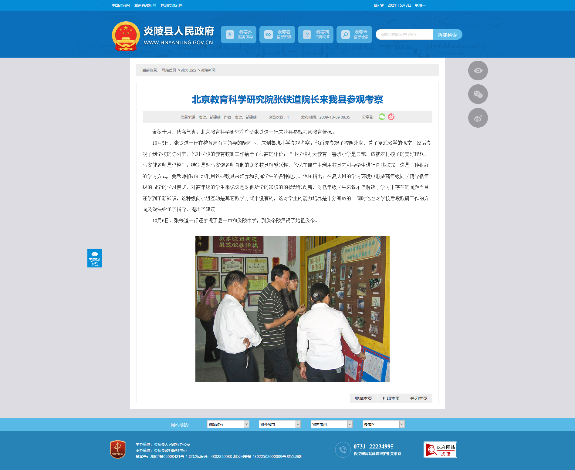 10月6日,张铁道一行还参观了县一中和炎陵中学,到炎帝陵拜谒了始祖炎帝。