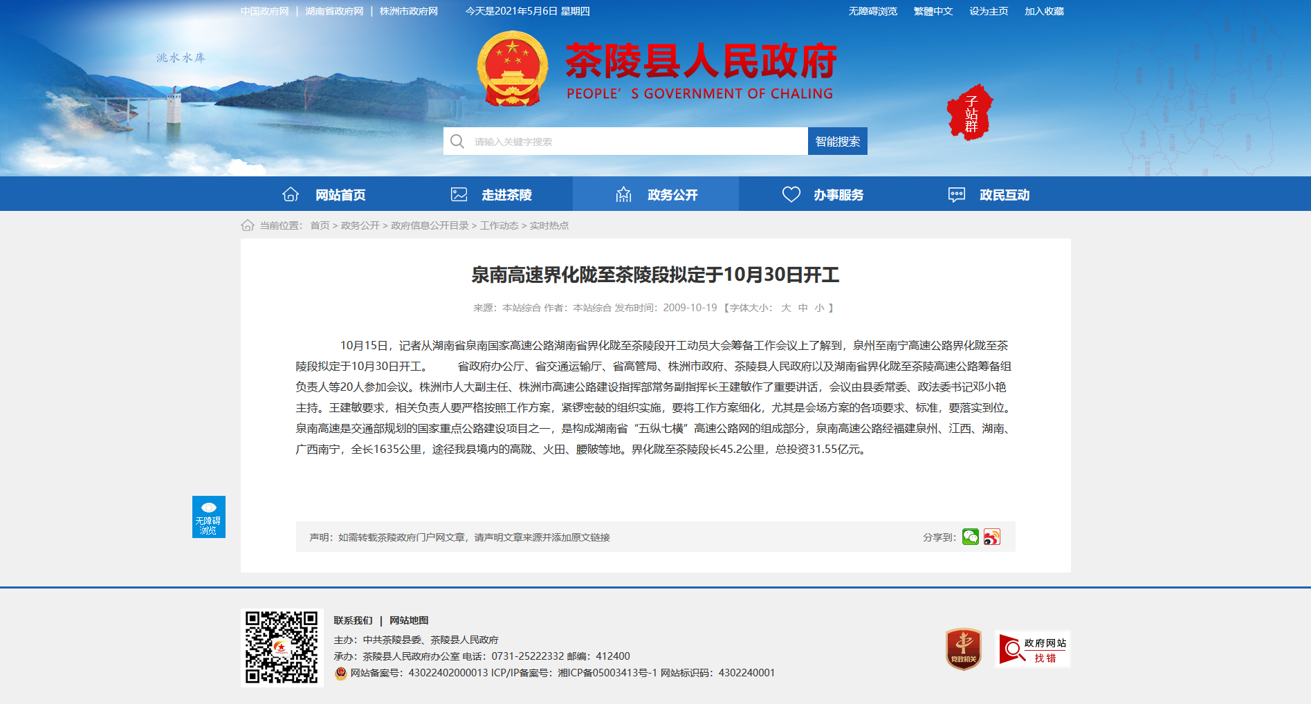 10月15日,记者从湖南省泉南国家高速公路湖南省界化陇至茶陵段开工动员大会筹备工作会议上了解到,泉州至南宁高速公路界化陇至茶陵段拟定于10月30日开工。 省政府办公厅、省交通运输厅、省高管局、株洲市政府、茶陵县人民政府以及湖南省界化陇至茶陵高速公路筹备组负责人等20人参加会议。株洲市人大副主任、株洲市高速公路建设指挥部常务副指挥长王建敏作了重要讲话,会议由县委常委、政法委书记邓小艳主持。王建敏要求,相关负责人要严格按照工作方案,紧锣密鼓的组织实施,要将工作方案细化,尤其是会场方案的各项要求、标准,要落实到位。泉南高速是交通部规划的国家重点公路建设项目之一,是构成湖南省“五纵七横”高速公路网的组成部分,泉南高速公路经福建泉州、江西、湖南、广西南宁,全长1635公里,途径我县境内的高陇、火田、腰陂等地。界化陇至茶陵段长45.2公里,总投资31.55亿元。