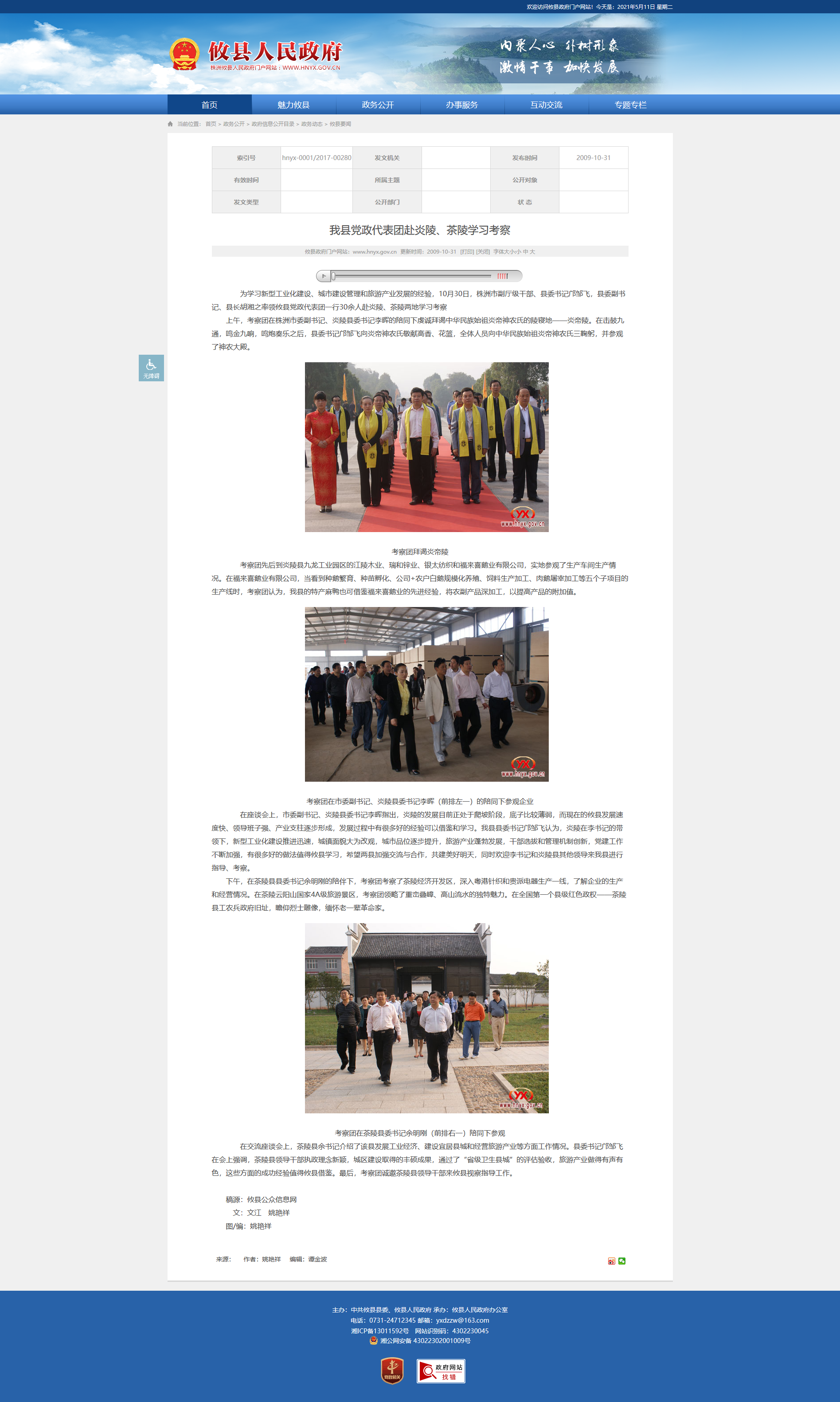 为学习新型工业化建设、城市建设管理和旅游产业发展的经验,10月30日,株洲市副厅级干部、县委书记邝邹飞,县委副书记、县长胡湘之率领攸县党政代表团一行30余人赴炎陵、茶陵两地学习考察