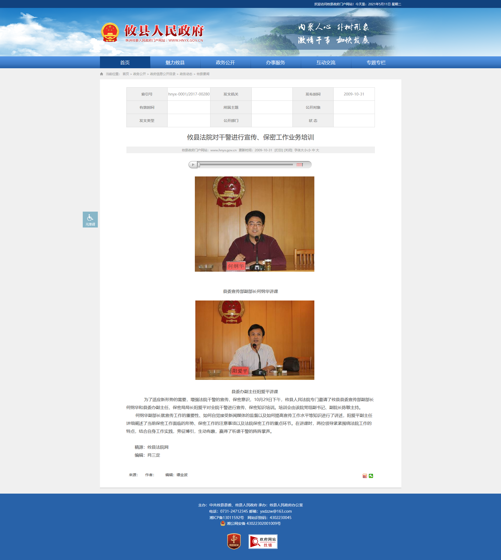 为了适应新形势的需要,增强法院干警的宣传、保密意识,10月29日下午,攸县人民法院专门邀请了攸县县委宣传部副部长何纲华和县委办副主任、保密局局长阳爱平对全院干警进行宣传、保密知识培训。培训会由该院党组副书记、副院长陈敏主持。