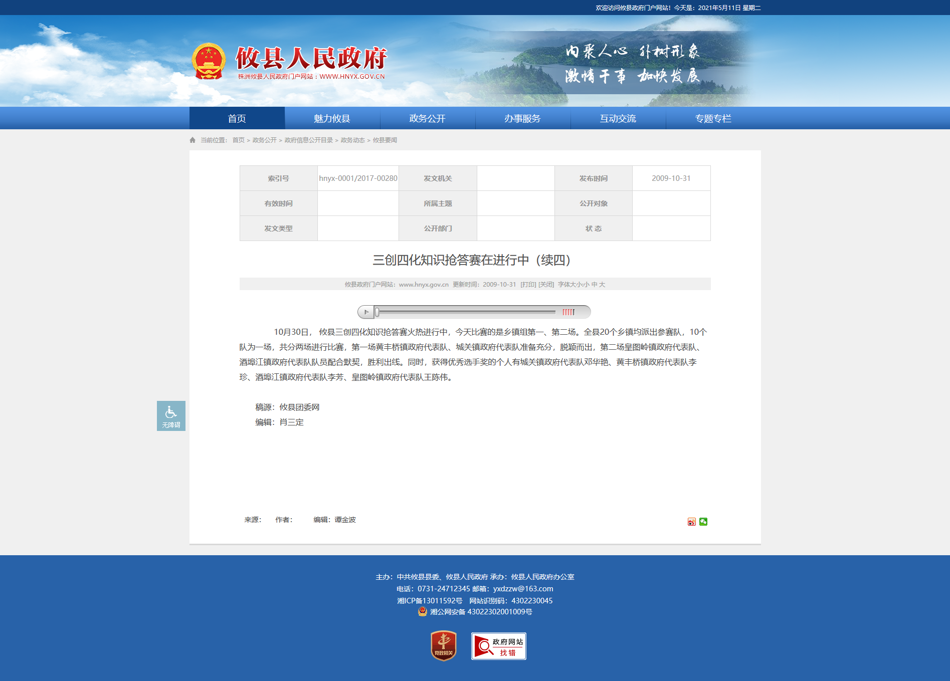时间:2009-10-31 00:00:00 来源: 攸县人民政府 来源截图