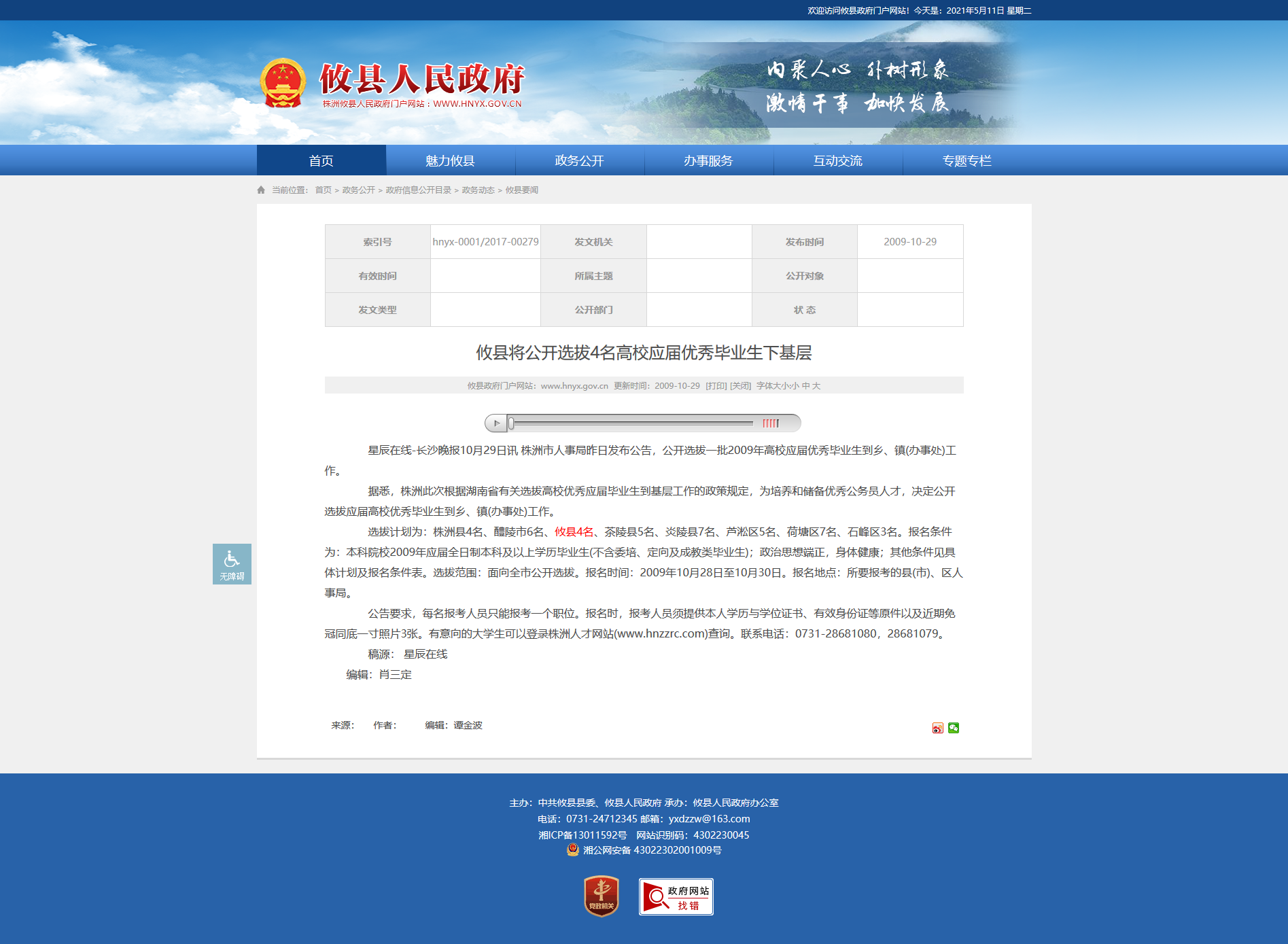 星辰在线-长沙晚报10月29日讯 株洲市人事局昨日发布公告,公开选拔一批2009年高校应届优秀毕业生到乡、镇(办事处)工作。