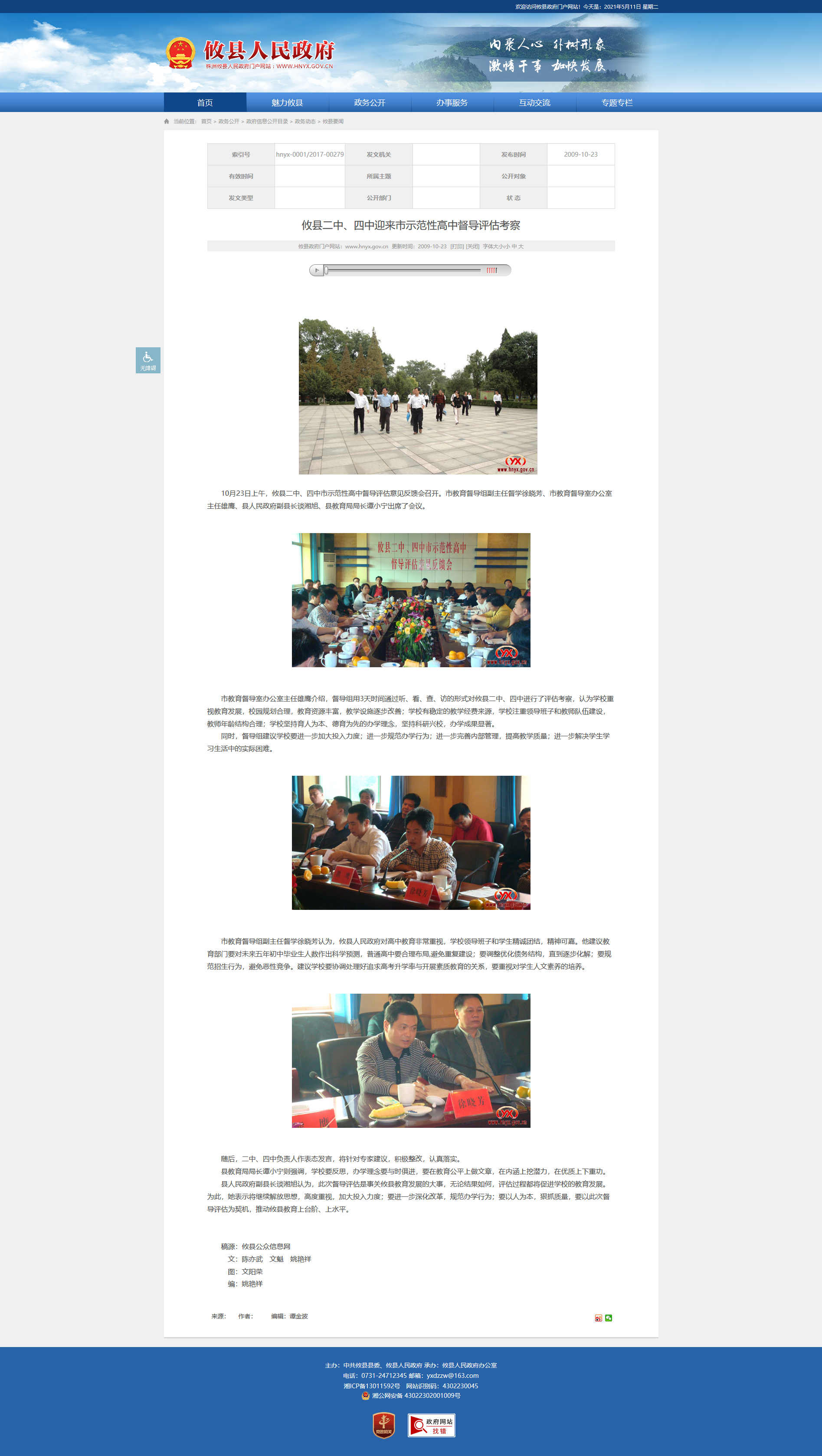 市教育督导室办公室主任雄鹰介绍,督导组用3天时间通过听、看、查、访的形式对攸县二中、四中进行了评估考察,认为学校重视教育发展,校园规划合理,教育资源丰富,教学设施逐步改善;学校有稳定的教学经费来源,学校注重领导班子和教师队伍建设,教师年龄结构合理;学校坚持育人为本、德育为先的办学理念,坚持科研兴校,办学成果显著。 同时,督导组建议学校要进一步加大投入力度;进一步规范办学行为;进一步完善内部管理,提高教学质量;进一步解决学生学习生活中的实际困难。