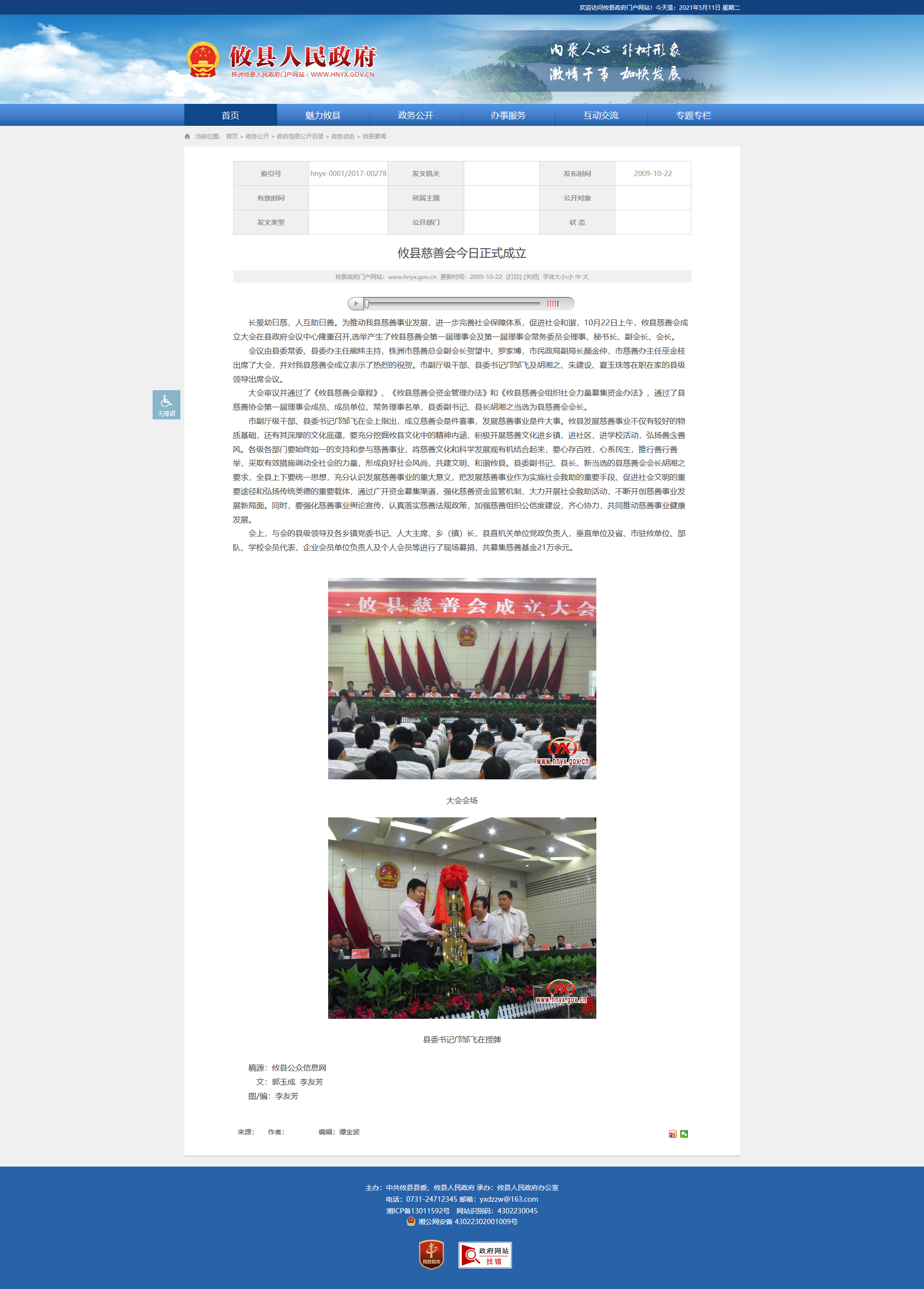 长爱幼曰慈,人互助曰善。为推动我县慈善事业发展,进一步完善社会保障体系,促进社会和谐,10月22日上午,攸县慈善会成立大会在县政府会议中心隆重召开,选举产生了攸县慈善会第一届理事会及第一届理事会常务委员会理事、秘书长、副会长、会长。 会议由县委常委、县委办主任熊炜主持,株洲市慈善总会副会长贺望中、罗家博,市民政局副局长颜金仲,市慈善办主任巫金桂出席了大会,并对我县慈善会成立表示了热烈的祝贺。市副厅级干部、县委书记邝邹飞及胡湘之、朱建设、夏玉珠等在职在家的县级领导出席会议。 大会审议并通过了《攸县慈善会章程》、《攸县慈善会资金管理办法》和《攸县慈善会组织社会力量募集资金办法》,通过了县慈善协会第一届理事会成员、成员单位、常务理事名单,县委副书记、县长胡湘之当选为县慈善会会长。 市副厅级干部、县委书记邝邹飞在会上指出,成立慈善会是件喜事,发展慈善事业是件大事。攸县发展慈善事业不仅有较好的物质基础,还有其深厚的文化底蕴,要充分挖掘攸县文化中的精神内涵,积极开展慈善文化进乡镇,进社区,进学校活动,弘扬善念善风。各级各部门要始终如一的支持和参与慈善事业,将慈善文化和科学发展观有机结合起来,要心存百姓,心系民生,推行善行善举,采取有效措施调动全社会的力量,形成良好社会风尚,共建文明、和谐攸县。县委副书记、县长、新当选的县慈善会会长胡湘之要求,全县上下要统一思想,充分认识发展慈善事业的重大意义,把发展慈善事业作为实施社会救助的重要手段、促进社会文明的重要途径和弘扬传统美德的重要载体,通过广开资金募集渠道,强化慈善资金监管机制,大力开展社会救助活动,不断开创慈善事业发展新局面。同时,要强化慈善事业舆论宣传,认真落实慈善法规政策,加强慈善组织公信度建设,齐心协力,共同推动慈善事业健康发展。 会上,与会的县级领导及各乡镇党委书记、人大主席、乡(镇)长,县直机关单位党政负责人,垂直单位及省、市驻攸单位、部队、学校会员代表,企业会员单位负责人及个人会员等进行了现场募捐,共募集慈善基金21万余元。