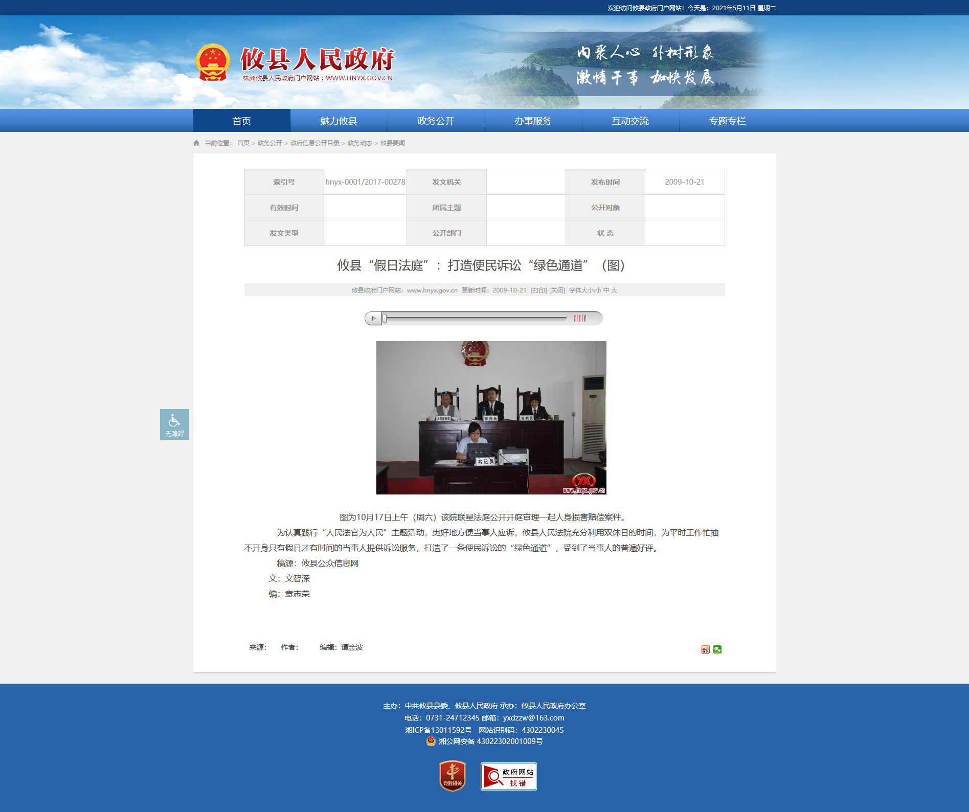 为认真践行“人民法官为人民”主题活动,更好地方便当事人应诉,攸县人民法院充分利用双休日的时间,为平时工作忙抽不开身只有假日才有时间的当事人提供诉讼服务,打造了一条便民诉讼的“绿色通道”,受到了当事人的普遍好评。