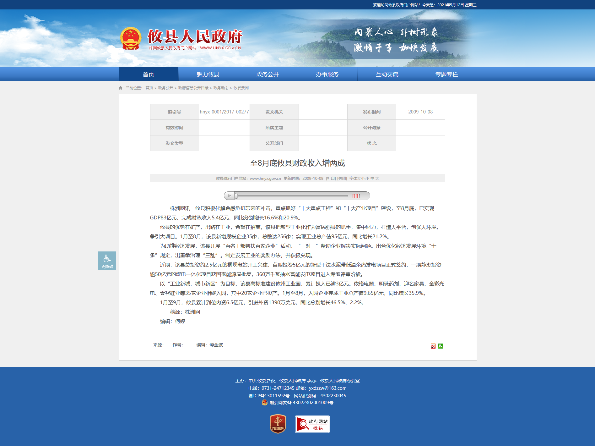 株洲网讯 攸县积极化解金融危机带来的冲击,重点抓好“十大重点工程”和“十大产业项目”建设,至8月底,已实现GDP83亿元,完成财政收入5.4亿元,同比分别增长16.6%和20.9%。