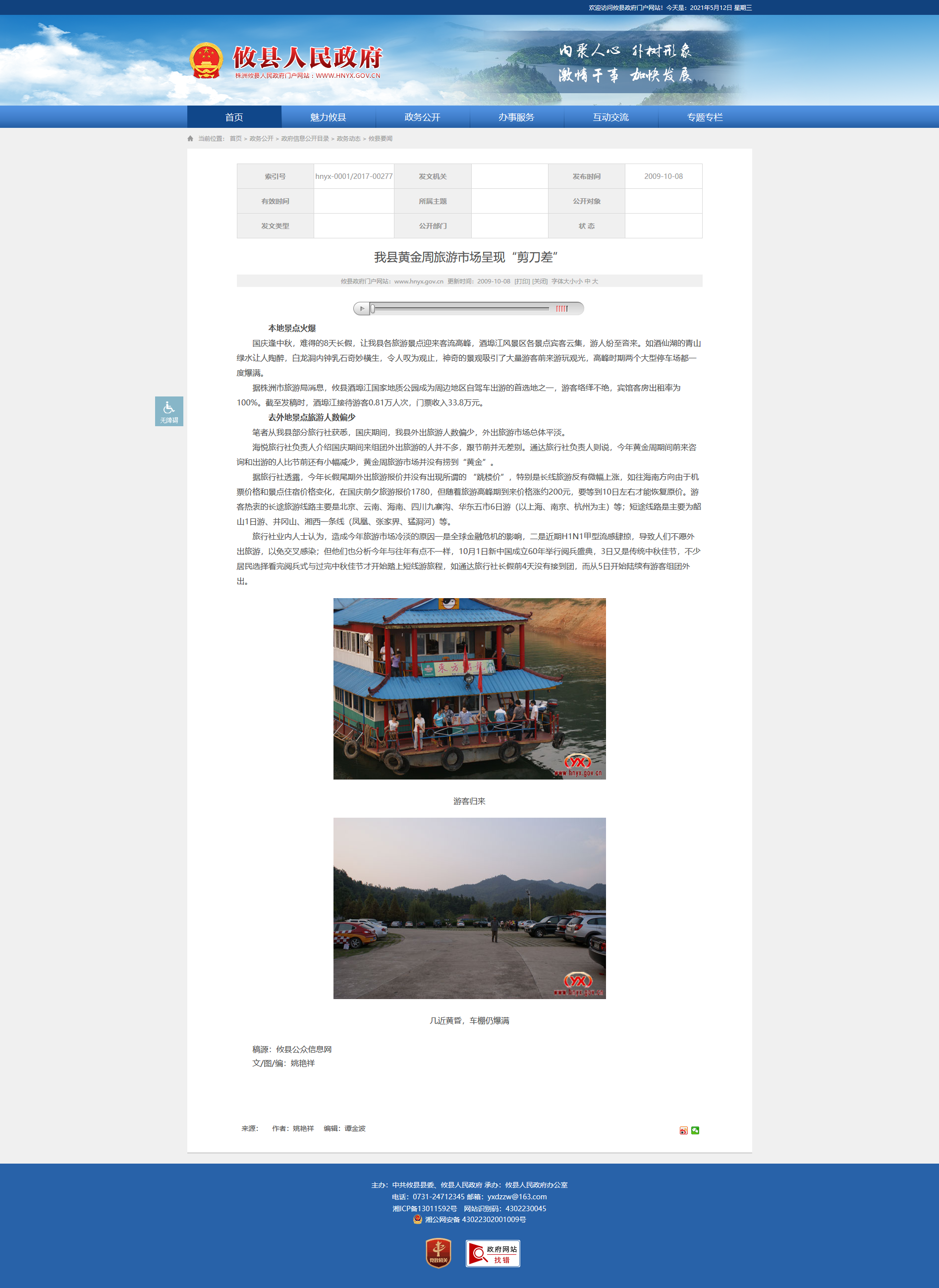 据株洲市旅游局消息,攸县酒埠江国家地质公园成为周边地区自驾车出游的首选地之一,游客络绎不绝,宾馆客房出租率为100%。截至发稿时,酒埠江接待游客0.81万人次,门票收入33.8万元。