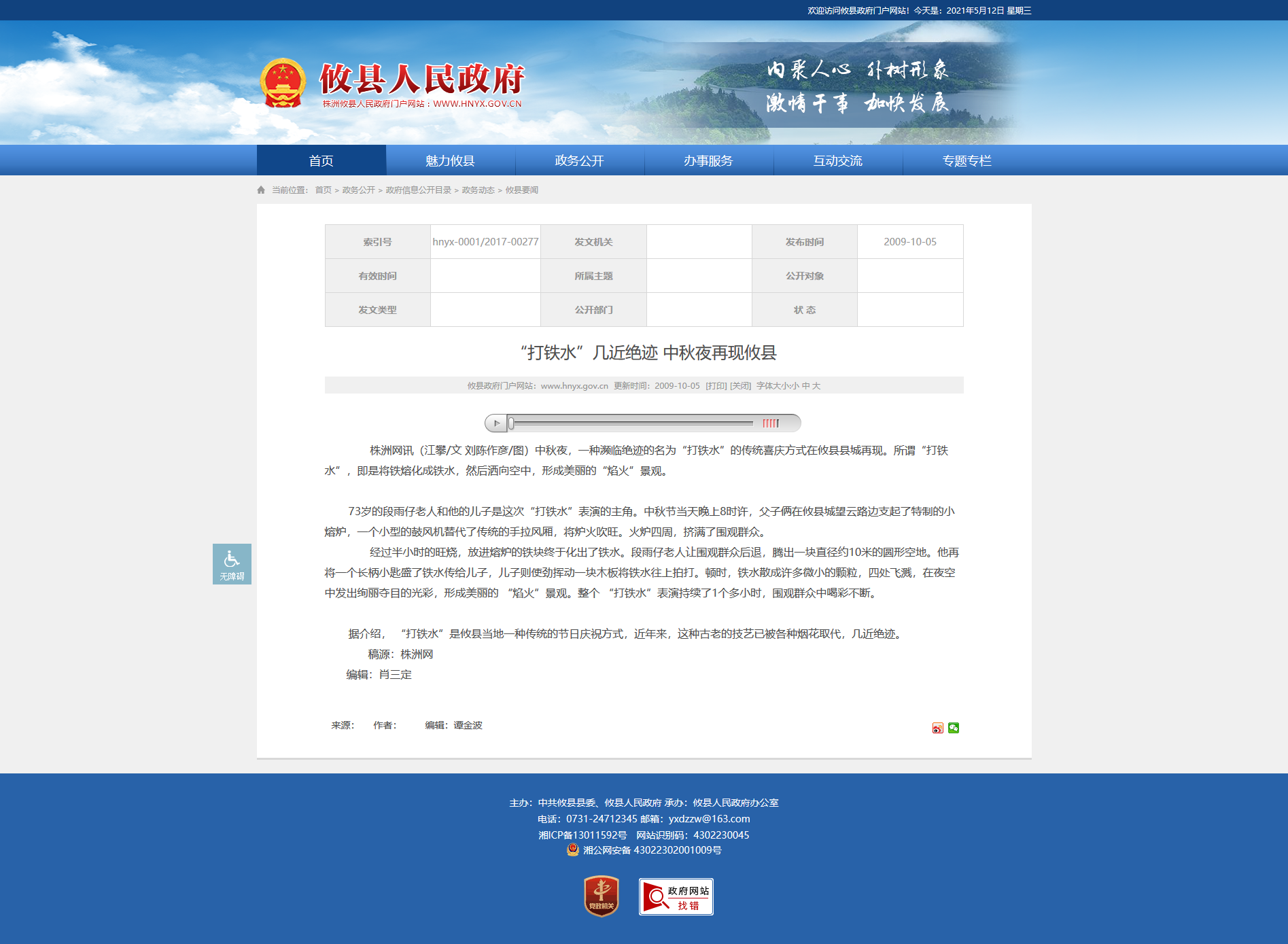 据介绍, “打铁水”是攸县当地一种传统的节日庆祝方式,近年来,这种古老的技艺已被各种烟花取代,几近绝迹。