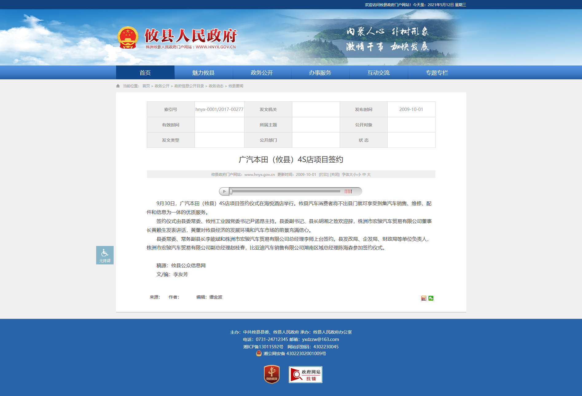 9月30日,广汽本田(攸县)4S店项目签约仪式在海悦酒店举行。攸县汽车消费者将不出县门就可享受到集汽车销售、维修、配件和信息为一体的优质服务。
