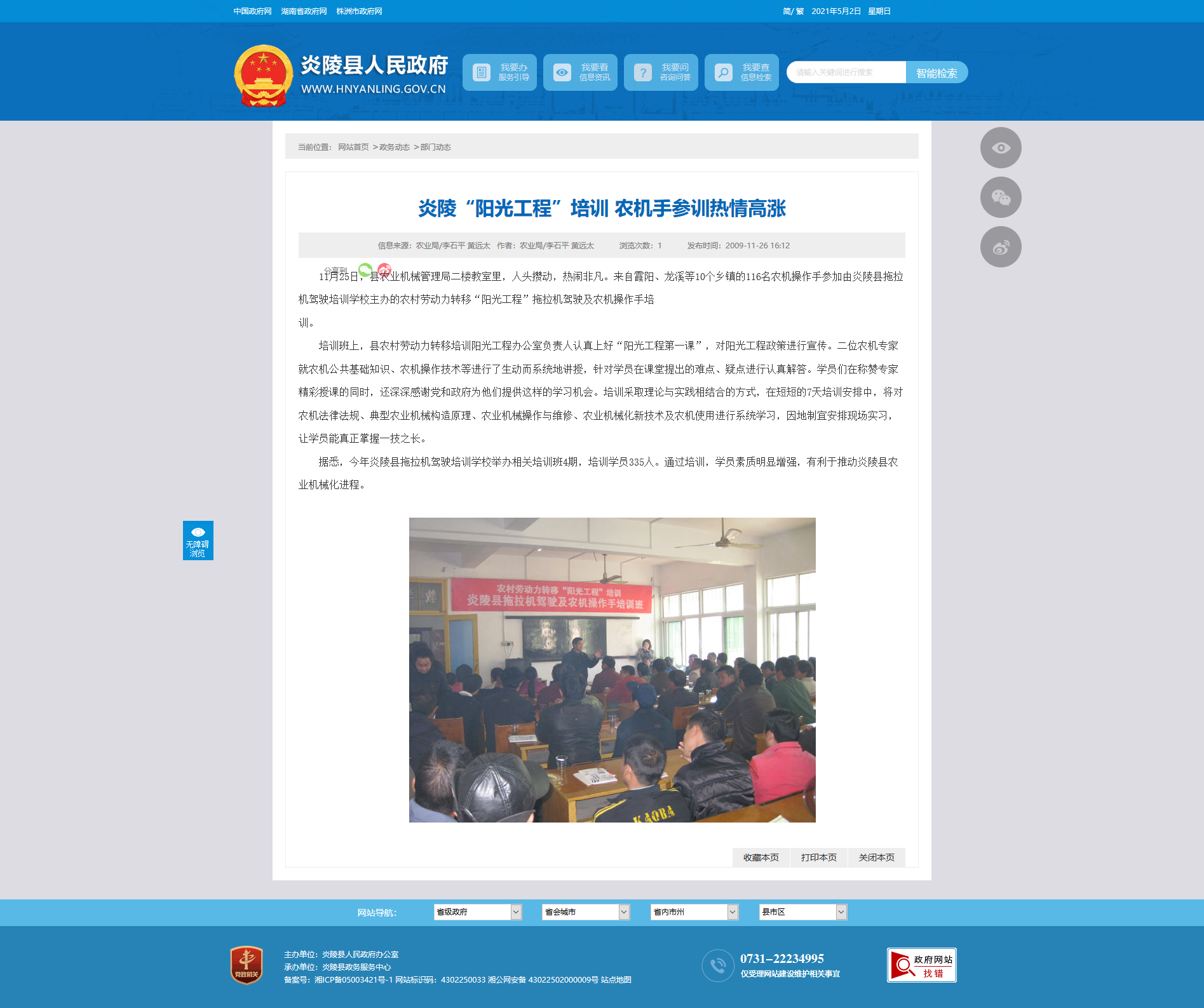 据悉,今年炎陵县拖拉机驾驶培训学校举办相关培训班4期,培训学员335人。通过培训,学员素质明显增强,有利于推动炎陵县农业机械化进程。