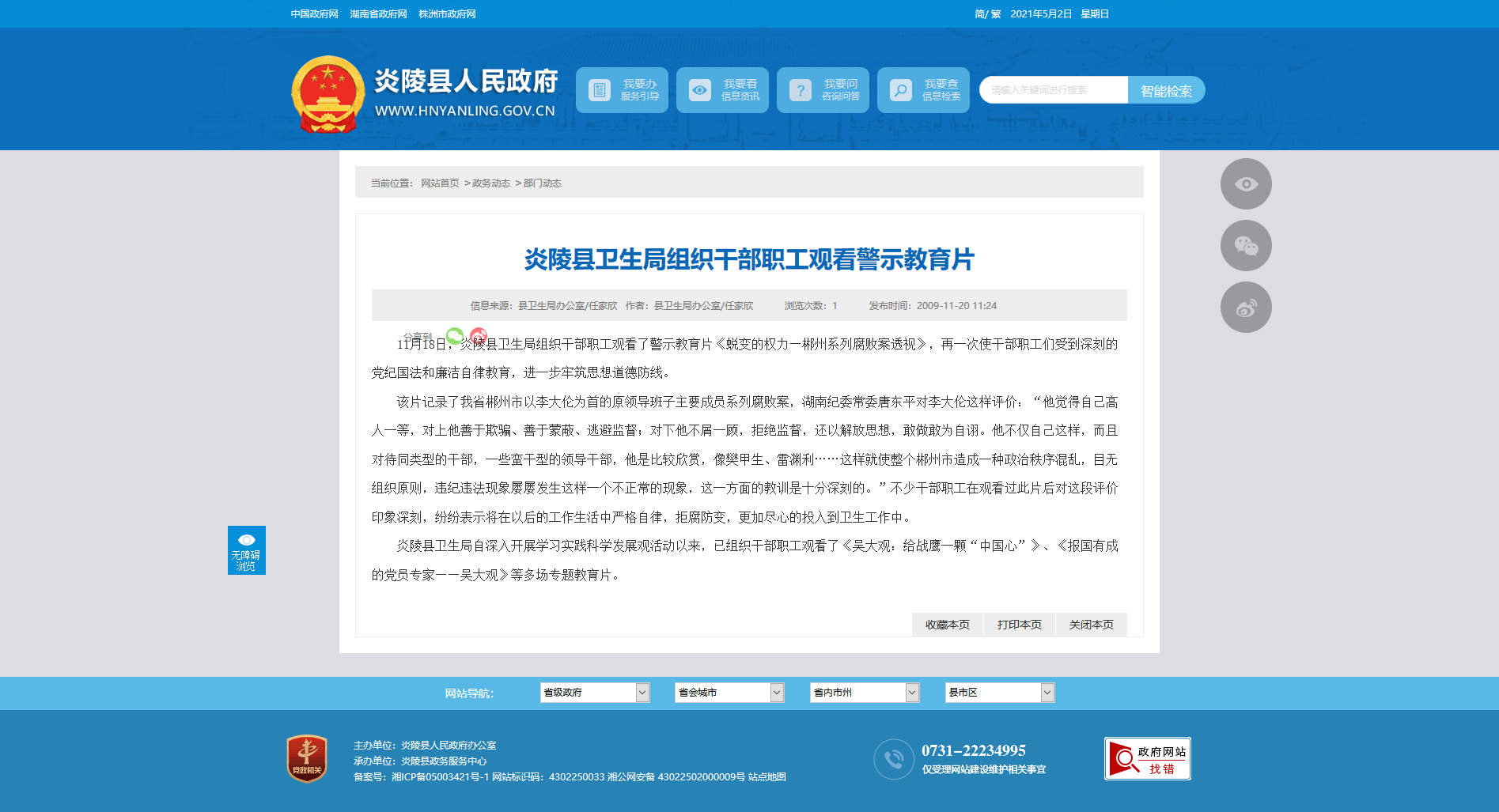 该片记录了我省郴州市以李大伦为首的原领导班子主要成员系列腐败案,湖南纪委常委唐东平对李大伦这样评价:“他觉得自己高人一等,对上他善于欺骗、善于蒙蔽、逃避监督;对下他不屑一顾,拒绝监督,还以解放思想,敢做敢为自诩。他不仅自己这样,而且对待同类型的干部,一些蛮干型的领导干部,他是比较欣赏,像樊甲生、雷渊利……这样就使整个郴州市造成一种政治秩序混乱,目无组织原则,违纪违法现象屡屡发生这样一个不正常的现象,这一方面的教训是十分深刻的。”不少干部职工在观看过此片后对这段评价印象深刻,纷纷表示将在以后的工作生活中严格自律,拒腐防变,更加尽心的投入到卫生工作中。