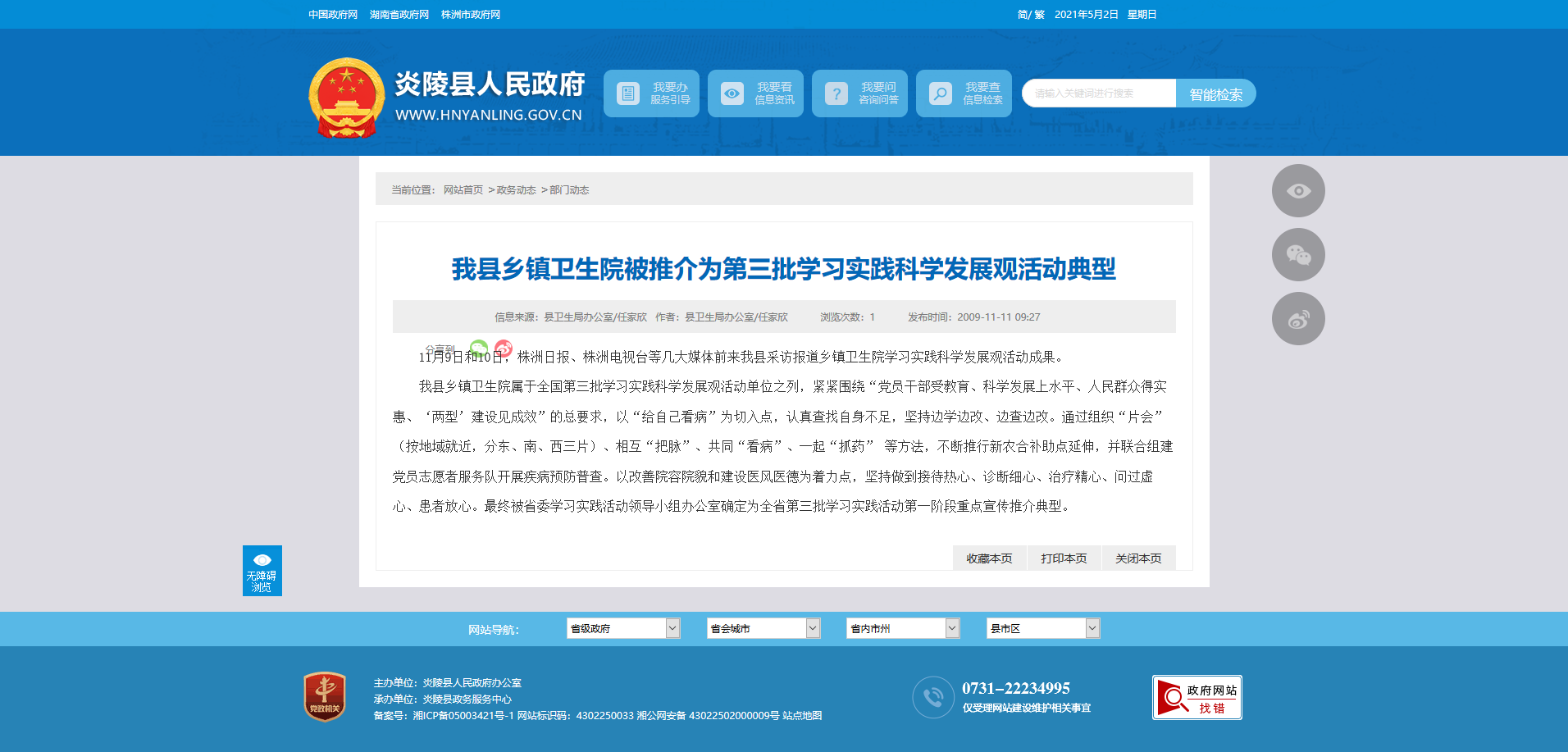 我县乡镇卫生院属于全国第三批学习实践科学发展观活动单位之列,紧紧围绕“党员干部受教育、科学发展上水平、人民群众得实惠、‘两型’建设见成效”的总要求,以“给自己看病”为切入点,认真查找自身不足,坚持边学边改、边查边改。通过组织“片会”(按地域就近,分东、南、西三片)、相互“把脉”、共同“看病”、一起“抓药” 等方法,不断推行新农合补助点延伸,并联合组建党员志愿者服务队开展疾病预防普查。以改善院容院貌和建设医风医德为着力点,坚持做到接待热心、诊断细心、治疗精心、问过虚心、患者放心。最终被省委学习实践活动领导小组办公室确定为全省第三批学习实践活动第一阶段重点宣传推介典型。