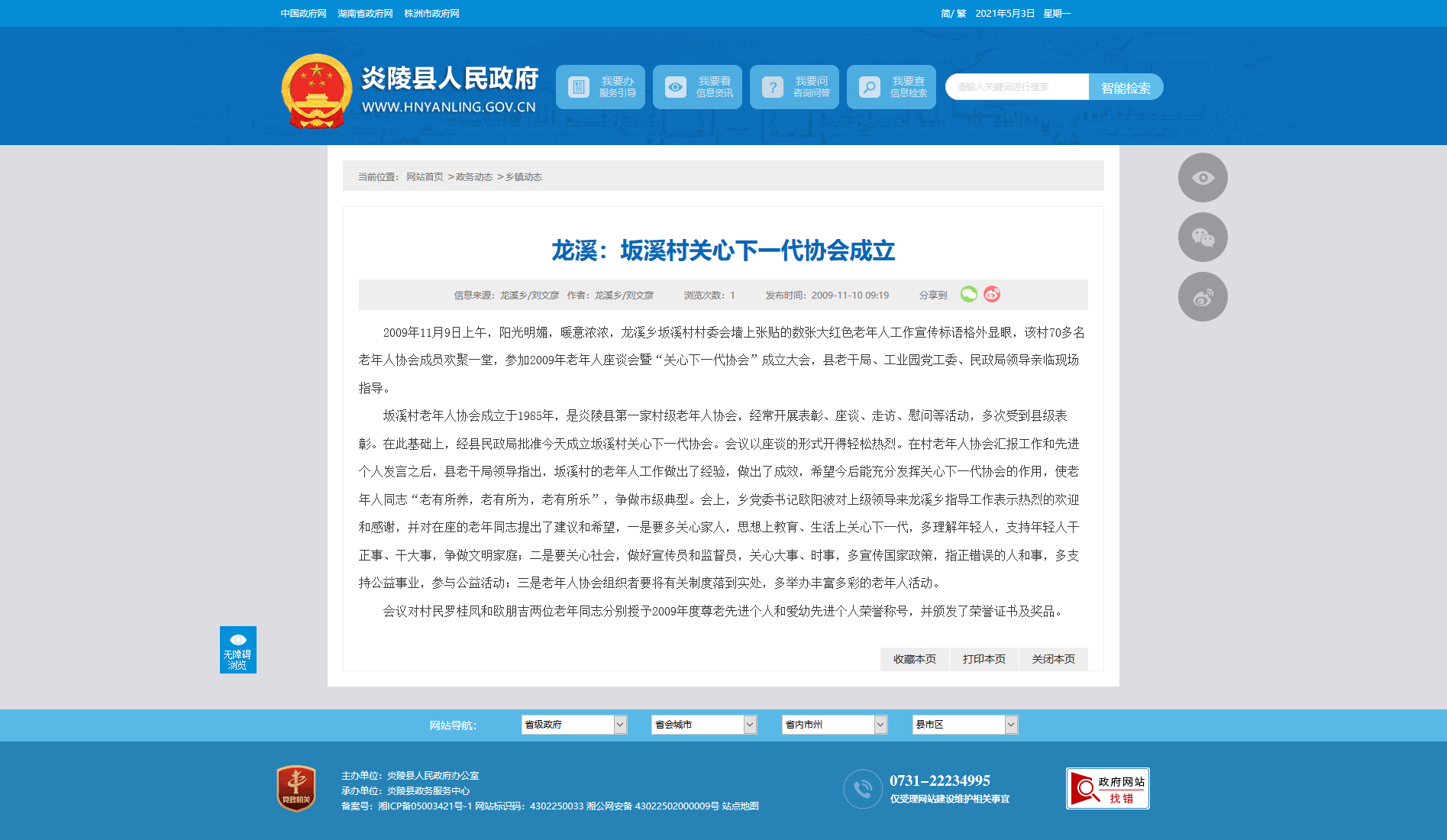 坂溪村老年人协会成立于1985年,是炎陵县第一家村级老年人协会,经常开展表彰、座谈、走访、慰问等活动,多次受到县级表彰。在此基础上,经县民政局批准今天成立坂溪村关心下一代协会。会议以座谈的形式开得轻松热烈。在村老年人协会汇报工作和先进个人发言之后,县老干局领导指出,坂溪村的老年人工作做出了经验,做出了成效,希望今后能充分发挥关心下一代协会的作用,使老年人同志“老有所养,老有所为,老有所乐”,争做市级典型。会上,乡党委书记欧阳波对上级领导来龙溪乡指导工作表示热烈的欢迎和感谢,并对在座的老年同志提出了建议和希望,一是要多关心家人,思想上教育、生活上关心下一代,多理解年轻人,支持年轻人干正事、干大事,争做文明家庭;二是要关心社会,做好宣传员和监督员,关心大事、时事,多宣传国家政策,指正错误的人和事,多支持公益事业,参与公益活动;三是老年人协会组织者要将有关制度落到实处,多举办丰富多彩的老年人活动。