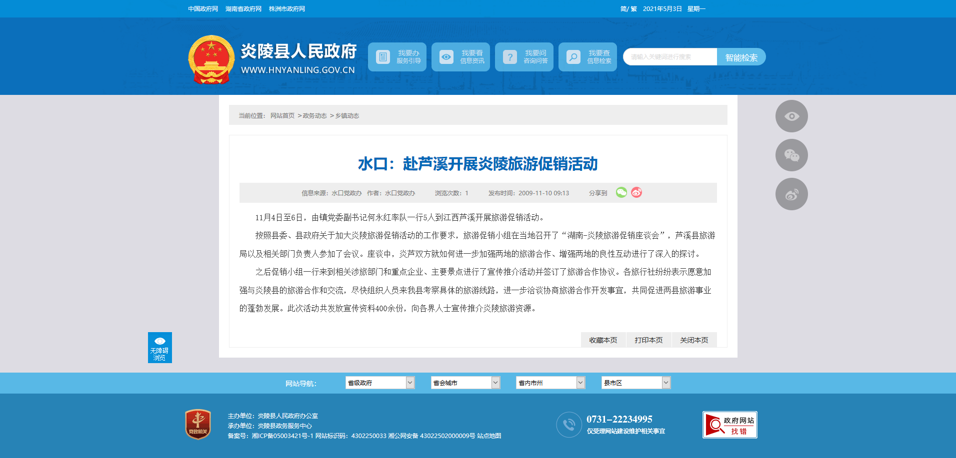 之后促销小组一行来到相关涉旅部门和重点企业、主要景点进行了宣传推介活动并签订了旅游合作协议。各旅行社纷纷表示愿意加强与炎陵县的旅游合作和交流,尽快组织人员来我县考察具体的旅游线路,进一步洽谈协商旅游合作开发事宜,共同促进两县旅游事业的蓬勃发展。此次活动共发放宣传资料400余份,向各界人士宣传推介炎陵旅游资源。