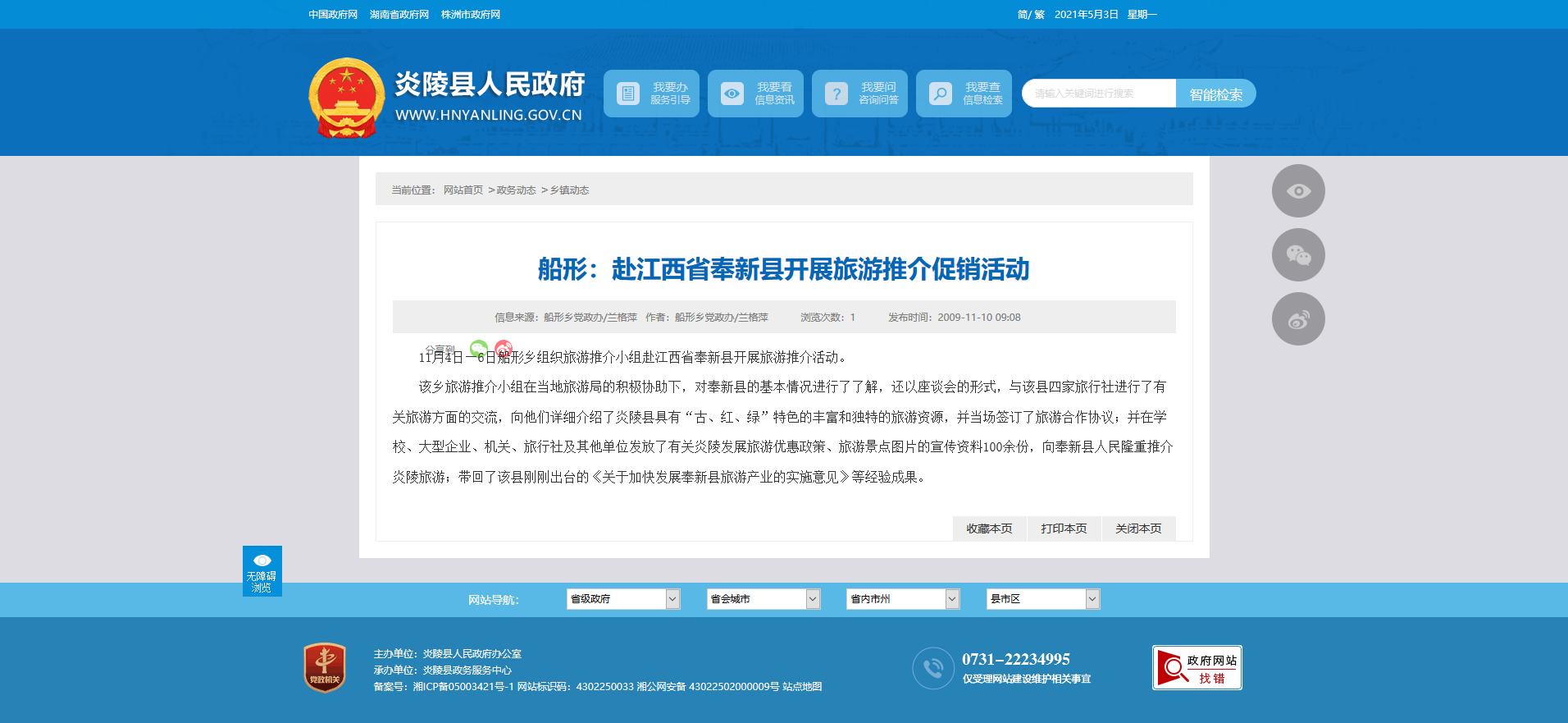 时间:2009-11-10 09:08:00 来源: 炎陵县人民政府 来源截图