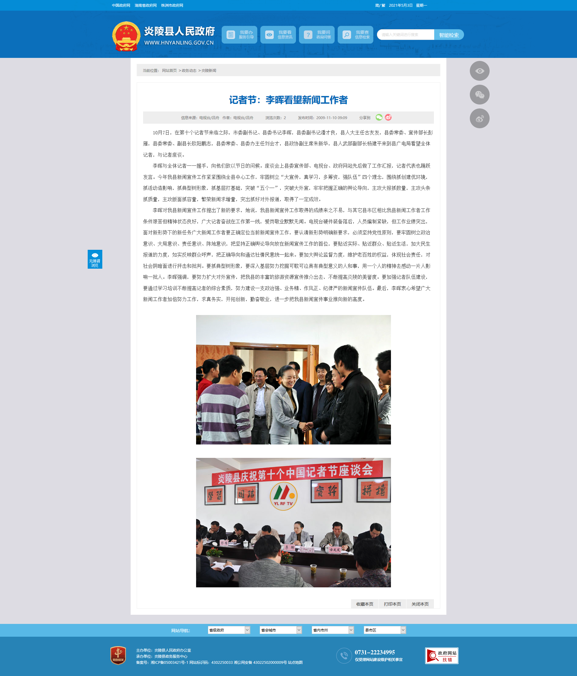 李晖对我县新闻宣传工作提出了新的要求,她说,我县新闻宣传工作取得的成绩来之不易,与其它县市区相比我县新闻工作者工作条件艰苦但精神状态良好,广大记者奋战在工作第一线,爱岗敬业默默无闻。电视台硬件装备落后,人员编制紧缺,但工作业绩突出,面对新形势下的新任务广大新闻工作者要正确定位当前新闻宣传工作,要认清新形势明确新要求,必须坚持党性原则,要牢固树立政治意识、大局意识、责任意识、阵地意识,把坚持正确舆论导向放在新闻宣传工作的首位,要贴近实际、贴近群众、贴近生活,加大民生报道的力度,如实反映群众呼声,把正确导向和通达社情民意统一起来。要加大舆论监督力度,维护老百姓的权益,体现社会责任,对社会阴暗面进行抨击和批判。要抓典型树形象,要深入基层努力挖掘可歌可泣具有典型意义的人和事,用一个人的精神去感动一片人影响一批人。李晖强调,要努力扩大对外宣传,把我县的丰富的旅游资源宣传推介出去,不断提高炎陵的美誉度。要加强记者队伍建设,要通过学习培训不断提高记者的综合素质,努力建设一支政治强、业务精、作风正、纪律严的新闻宣传队伍。最后,李晖衷心希望广大新闻工作者加倍努力工作,求真务实,开拓创新,勤奋敬业,进一步把我县新闻宣传事业推向新的高度。