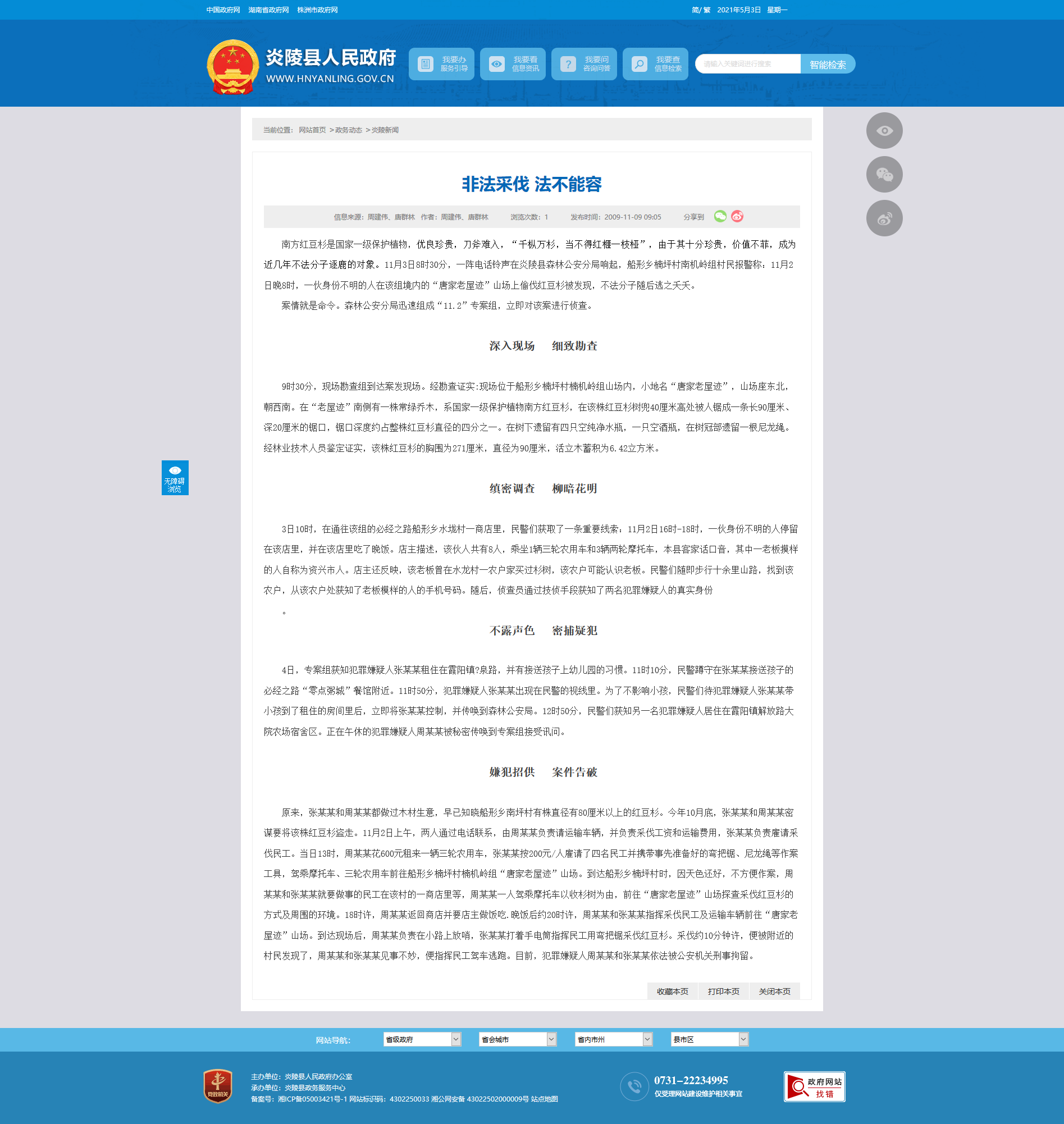 南方红豆杉是国家一级保护植物,优良珍贵,刀斧难入,“千枞万杉,当不得红榧一枝桠”,由于其十分珍贵,价值不菲,成为近几年不法分子逐鹿的对象。11月3日8时30分,一阵电话铃声在炎陵县森林公安分局响起,船形乡楠坪村南机岭组村民报警称:11月2日晚8时,一伙身份不明的人在该组境内的“唐家老屋迹”山场上偷伐红豆杉被发现,不法分子随后逃之夭夭。