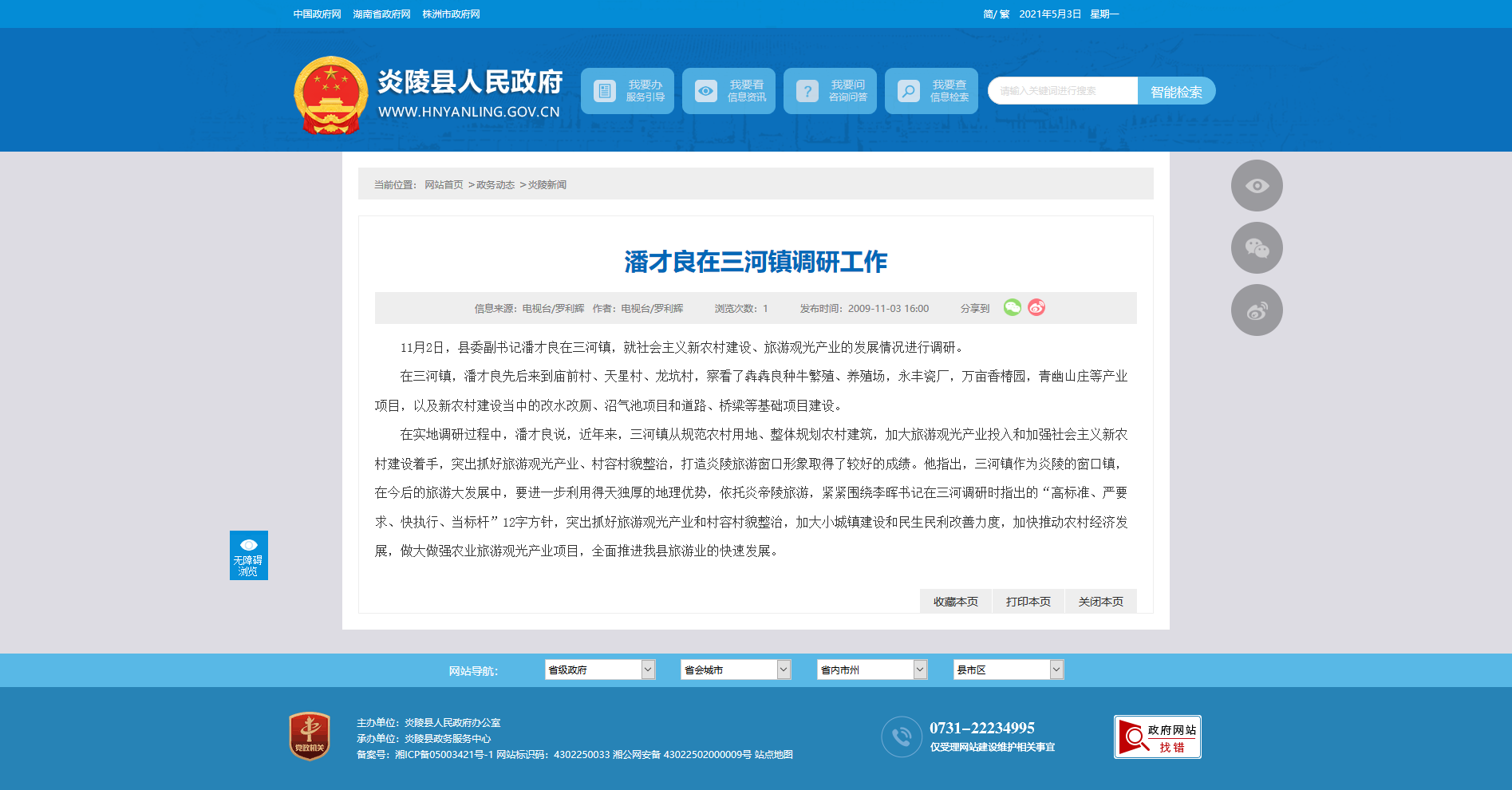 在实地调研过程中,潘才良说,近年来,三河镇从规范农村用地、整体规划农村建筑,加大旅游观光产业投入和加强社会主义新农村建设着手,突出抓好旅游观光产业、村容村貌整治,打造炎陵旅游窗口形象取得了较好的成绩。他指出,三河镇作为炎陵的窗口镇,在今后的旅游大发展中,要进一步利用得天独厚的地理优势,依托炎帝陵旅游,紧紧围绕李晖书记在三河调研时指出的“高标准、严要求、快执行、当标杆”12字方针,突出抓好旅游观光产业和村容村貌整治,加大小城镇建设和民生民利改善力度,加快推动农村经济发展,做大做强农业旅游观光产业项目,全面推进我县旅游业的快速发展。