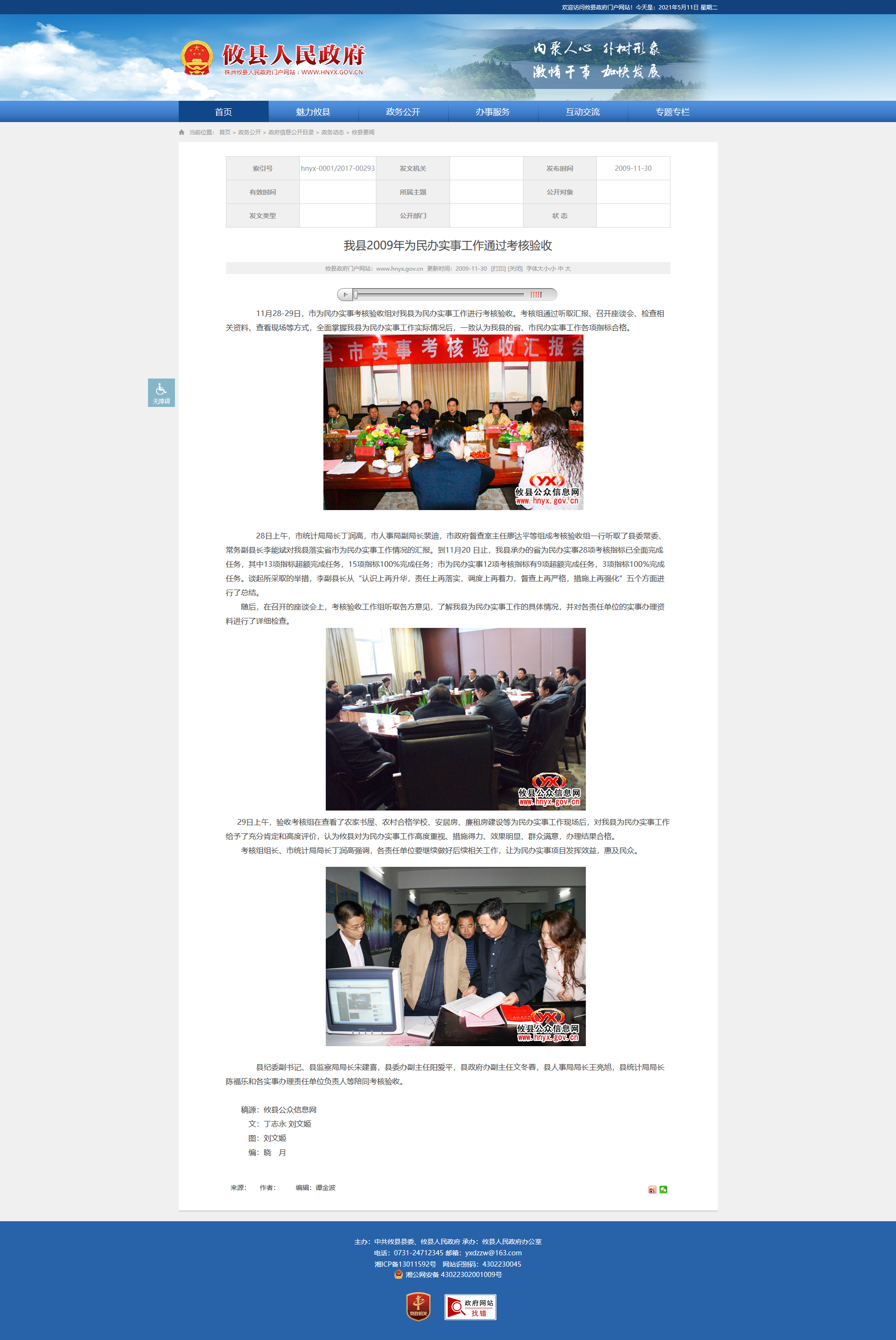 29日上午,验收考核组在查看了农家书屋、农村合格学校、安居房、廉租房建设等为民办实事工作现场后,对我县为民办实事工作给予了充分肯定和高度评价,认为攸县对为民办实事工作高度重视、措施得力、效果明显、群众满意,办理结果合格。