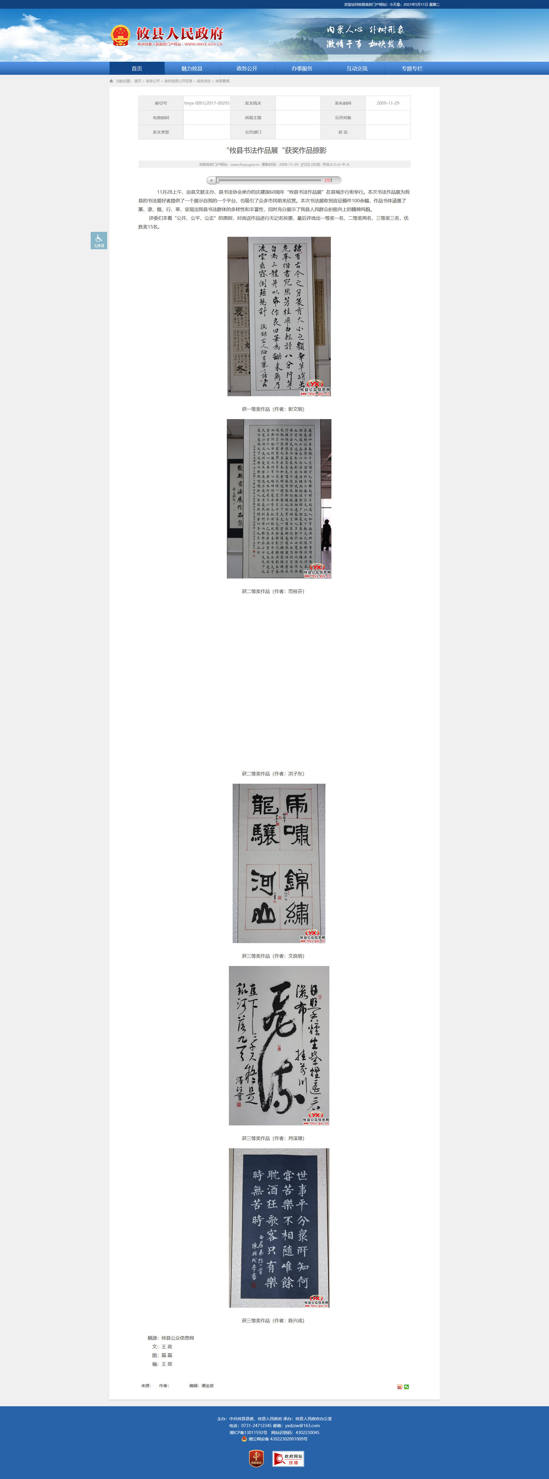 11月28上午,由县文联主办,县书法协会承办的庆建国60周年“攸县书法作品展”在县城步行街举行。本次书法作品展为我县的书法爱好者提供了一个展示自我的一个平台,也吸引了众多市民前来欣赏。本次书法展收到应征稿件100余幅,作品书体涵盖了篆、隶、楷、行、草,呈现出我县书法群体的多样性和丰富性,同时充分展示了我县人民群众积极向上的精神风貌。