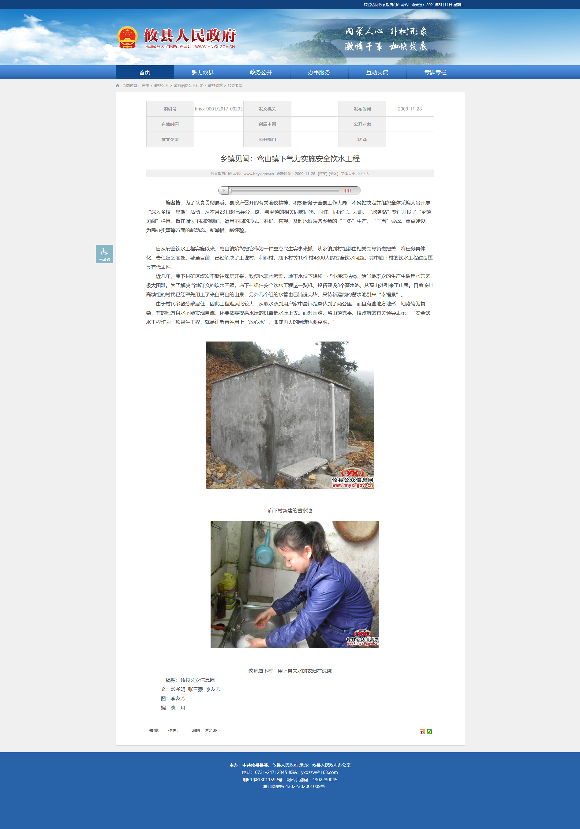 自从安全饮水工程实施以来,鸾山镇始终把它作为一件重点民生实事来抓。从乡镇到村组都由相关领导负责把关,将任务具体化、责任落到实处。截至目前,已经解决了上垅村、利洞村、庙下村等10个村4800人的安全饮水问题。其中庙下村的饮水工程建设更具有代表性。