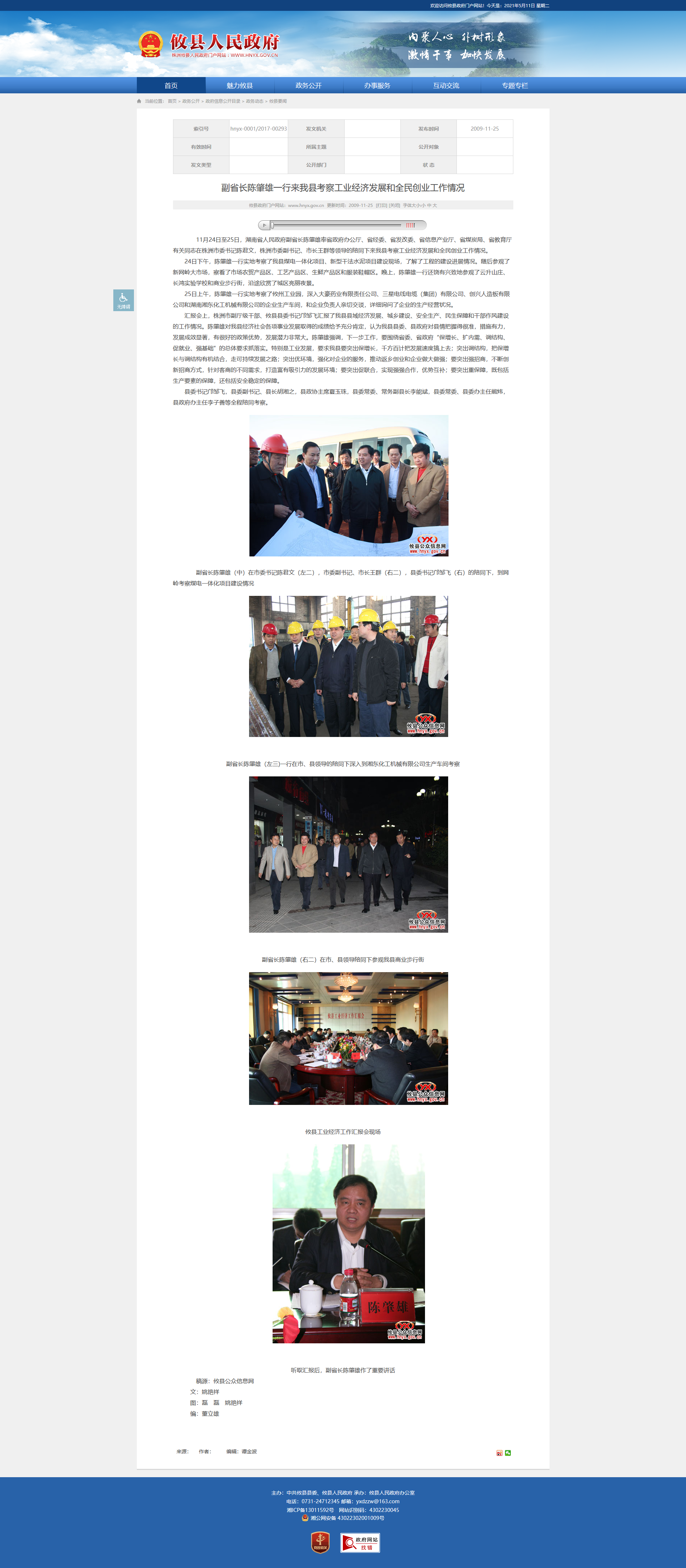 11月24日至25日,湖南省人民政府副省长陈肇雄率省政府办公厅、省经委、省发改委、省信息产业厅、省煤炭局、省教育厅有关同志在株洲市委书记陈君文,株洲市委副书记、市长王群等领导的陪同下来我县考察工业经济发展和全民创业工作情况。